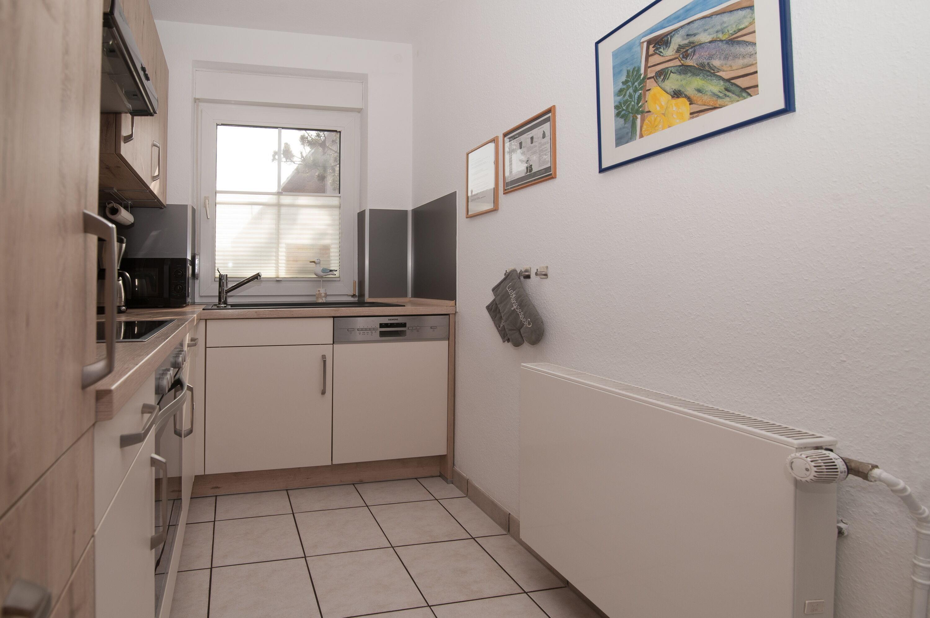 Einbauküche ist komplett ausgestattet, Herd mit Cerankochfeld, Dunstabzug, Mikrowelle, Geschirrspüler, Kühlschrank mit Gefrierfach, Filterkaffeemaschine, Toaster, Heißluftfriteuse und vielem mehr