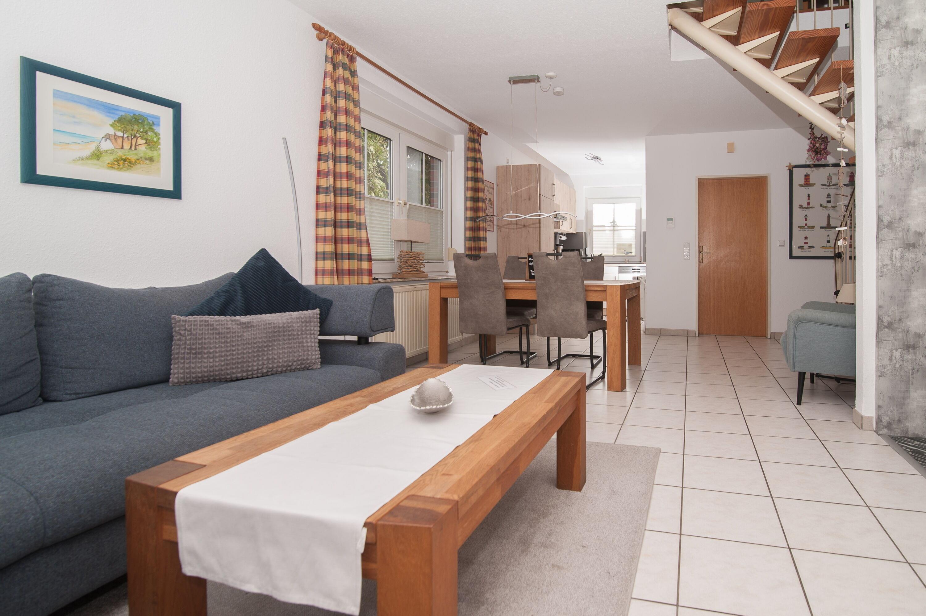 Doppelhaushälfte (75 qm), für bis zu 4 Personen komfortabel und liebevoll eingerichtet. Deich- und Hafennähe sowie die Nähe zum "Koppke" - Schwimmbad und Sauna -, Terrasse mit Gartenmöbeln und großer, sichtgeschützter Wiese hinter dem Haus. Ein Gartenhaus für Fahrräder steht zur Verfügung.