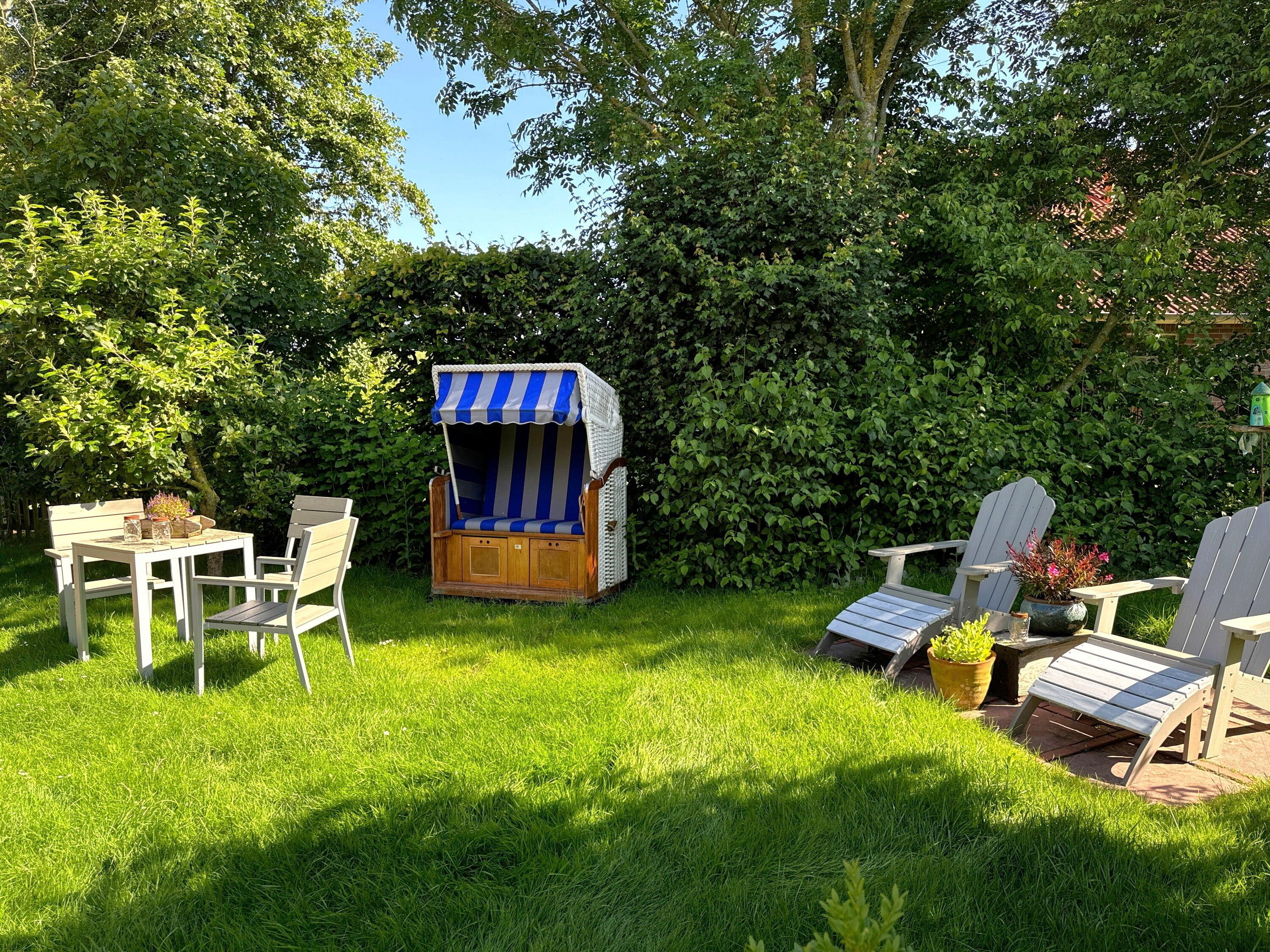 Die Wohnung befindet sich in ruhiger Ortsrandlage und verfügt über einen Garten zur alleinigen Nutzung. Hier finden Sie Gartenliegen, Tische, Stühle und einen Strandkorb. Ihr PKW kann unter dem Car-Port geschützt abgestellt werden und die Fahrräder im angrenzenden Schuppen (mit Stromanschluss) untergebracht werden. Ein kostenloser WLAN-Gastzugang ist verfügbar.
