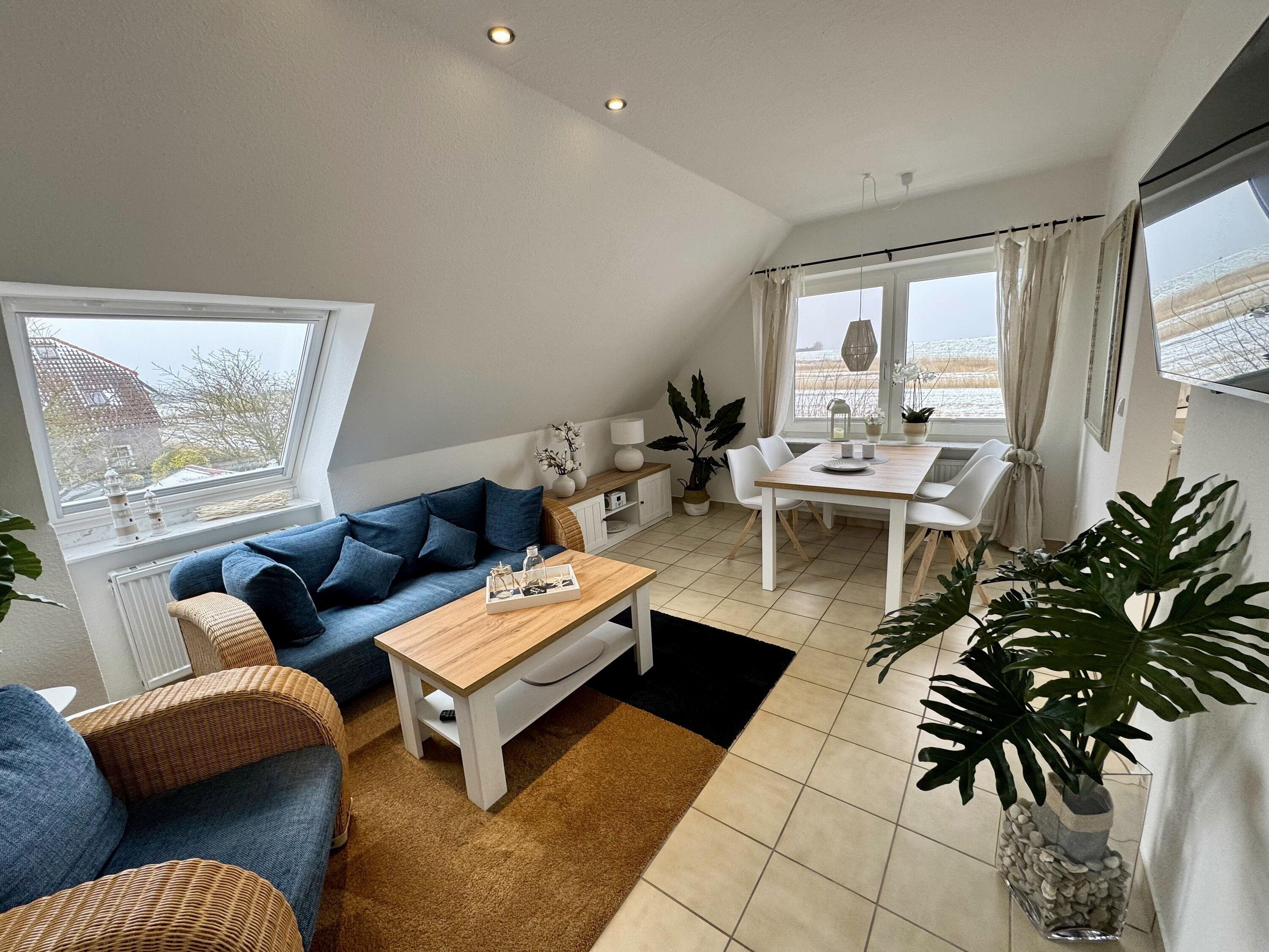 Das Highlight der Wohnung "Am Deich" ist der weite Blick über die Felder auf den Deich. Diese Wohnung befindet sich im Obergeschoss. Sie ist für maximal 3 Personen ausgelegt. Hier können Sie dem Stress und der Hektik des Alltags entfliehen. Die Wohnung ist mit Liebe zum Detail eingerichtet. Sie bietet Ihnen jeglichen Komfort, um Ihren Urlaub in jeder Jahreszeit angenehm zu gestalten.