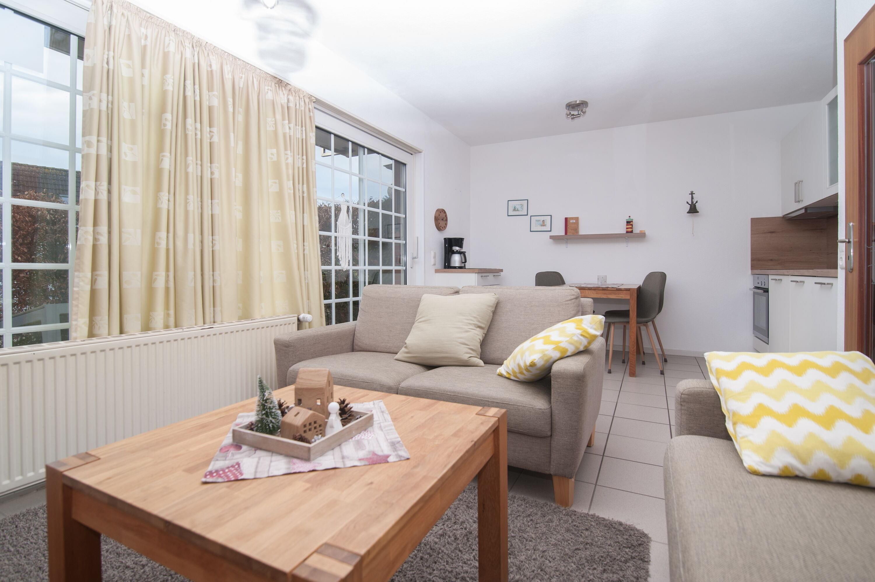 Die "Kleine Brise" ist eine Erdgeschosswohnung mit Terrasse, Gartenmöbeln und 1 PKW Stellplatz.