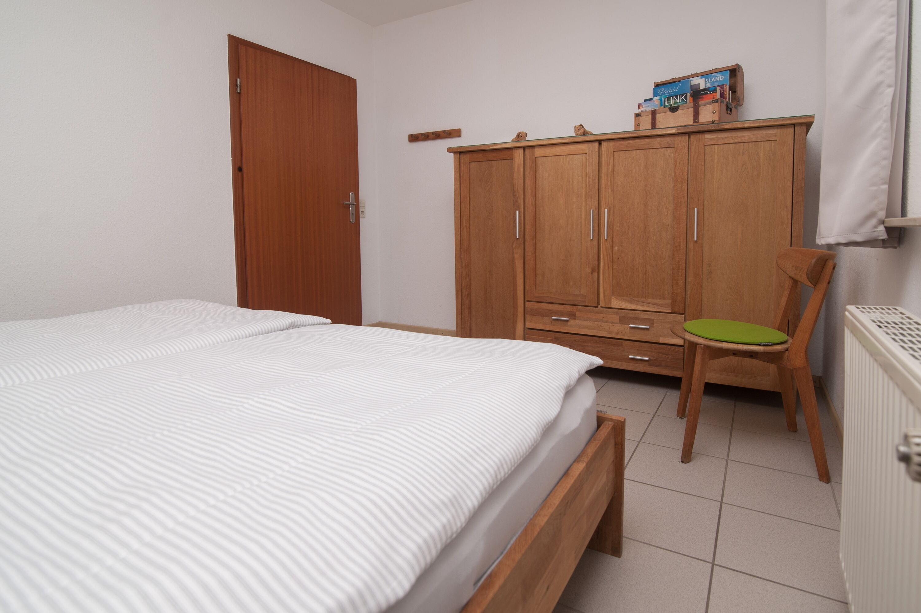 Die helle und gemütliche Wohnung hat eine Größe von 53 qm und befindet sich in einer ruhigen Wohnlage in unmittelbarer Deichnähe. Trotz dieser ruhigen Lage ist der Ortskern mit seinen zahlreichen Restaurants, Cafés und dem berühmten Greetsieler Hafen nur wenige Gehminuten entfernt.