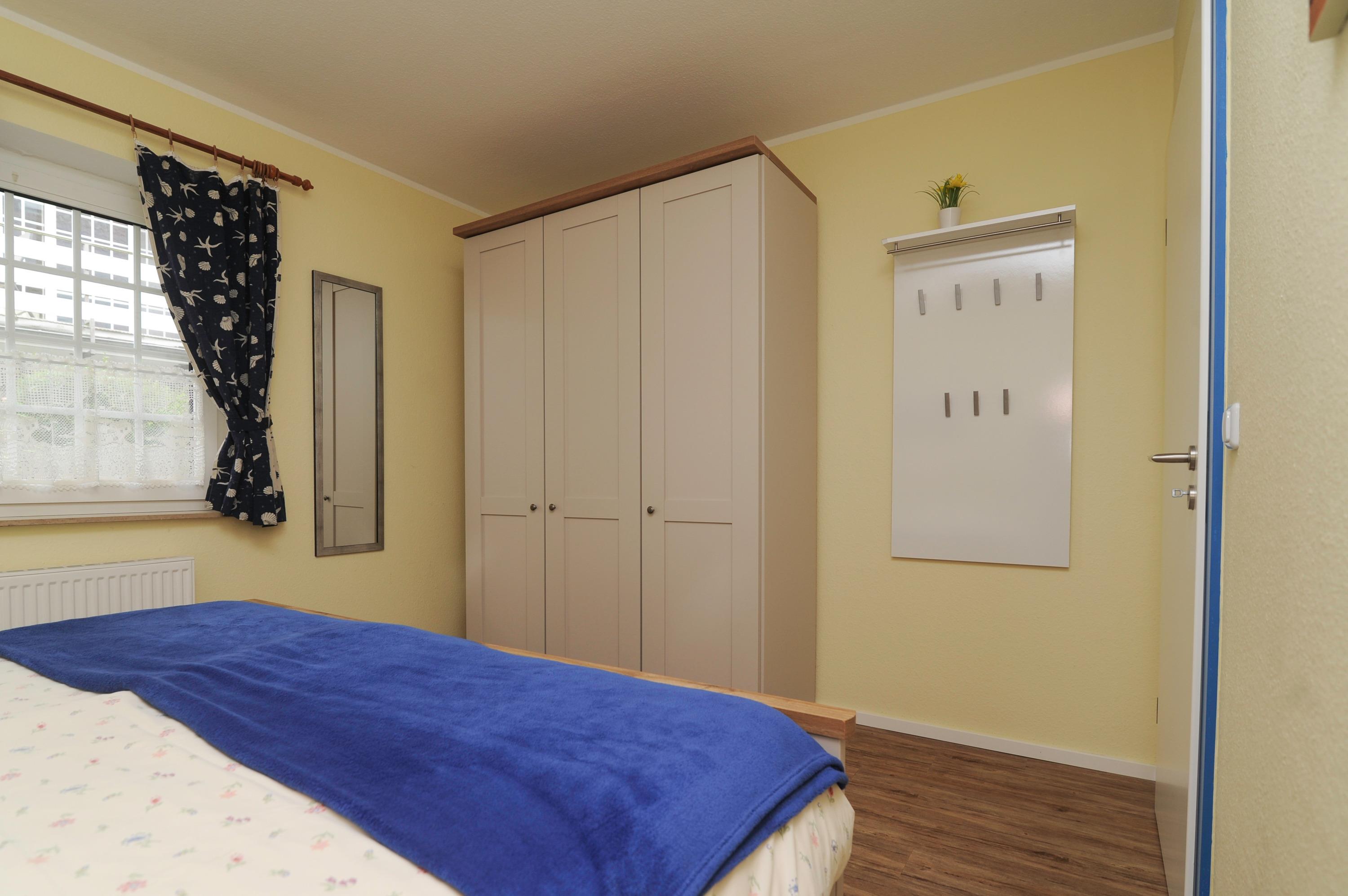 In der Wohnung gibt es zwei Schlafräume: Ein Schlafzimmer mit einem Doppelbett (getrennte Matratzen 90 x 200 cm) und ein weiterer Raum mit einem Einzelbett (90 x 200 cm).
