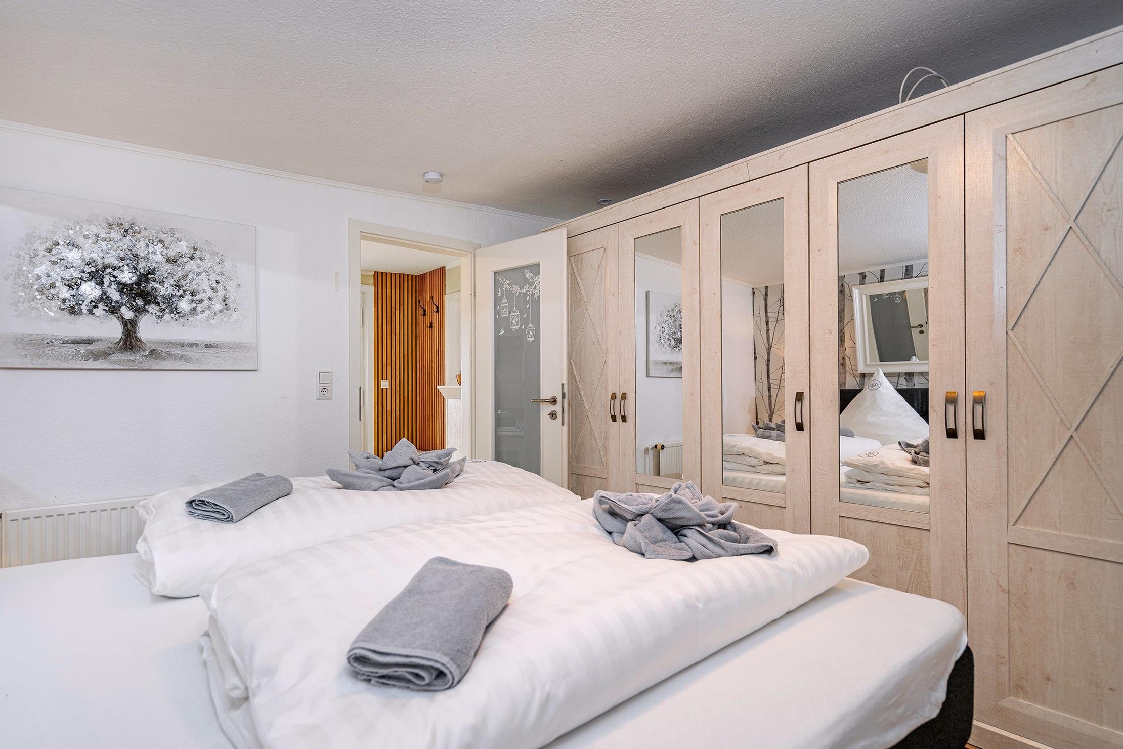 * Gerne bieten wir Ihnen unser Wäschepaket für Ihren Aufenthalt an, welches bezogene Betten, sowie Handtücher (Duschtuch, zwei Handtücher, Duschvorleger und ein Geschirrtuch) umfasst und € 19,50 p.P. kostet. Sie können dieses in der Buchungsstrecke unter dem Punkt "Ihr Mietpreis" hinzu buchen. *