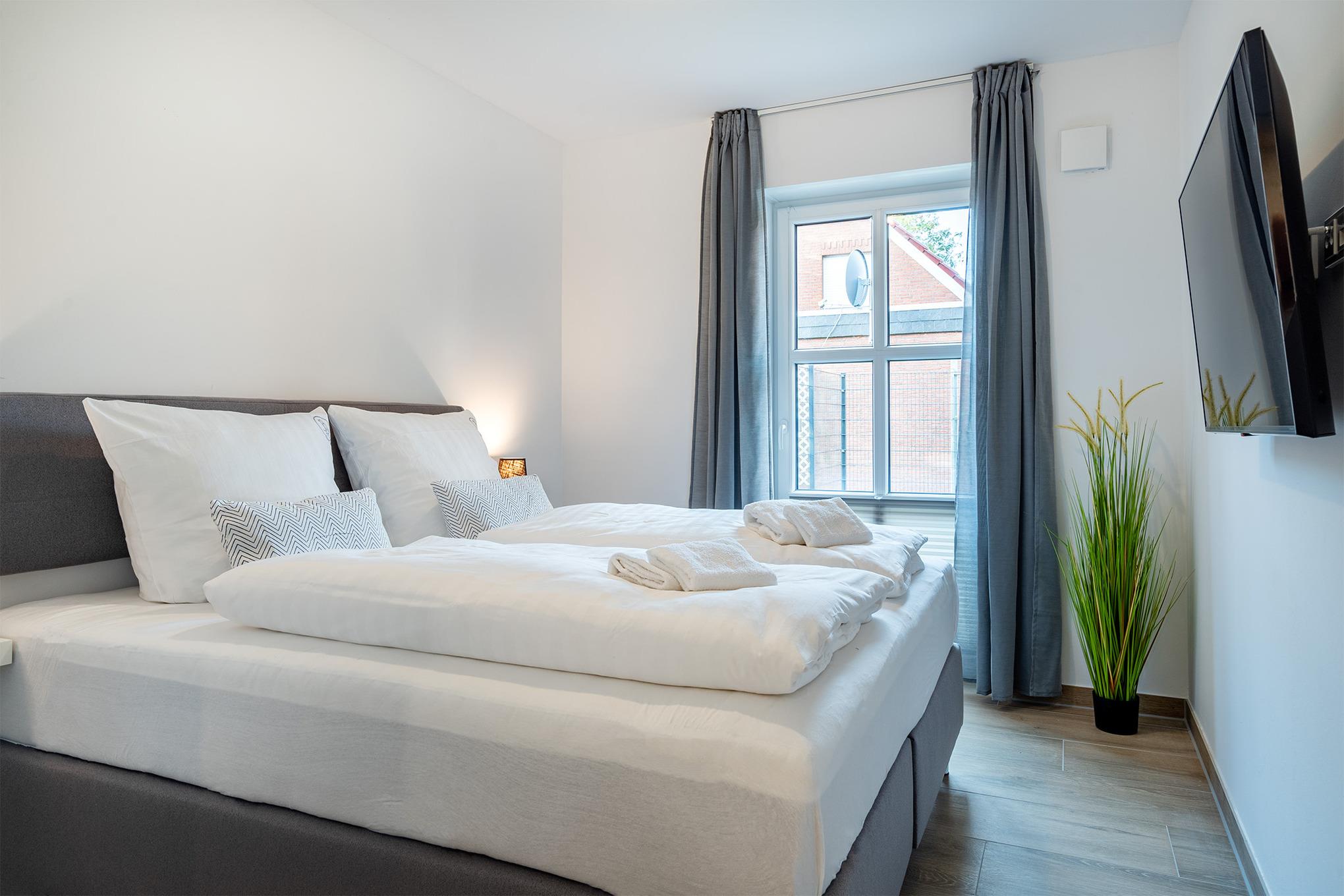 Die neue Ferienwohnung „Tjark“ bietet auf 70qm Wohnfläche im Erdgeschoss modernen Komfort und viel Platz für einen erholsamen Urlaub. Durch die durchdachte Raumaufteilung ist sie ideal für Paare, Familien oder Freunde. Die Wohnung verfügt über zwei gemütliche und geräumige Schlafzimmer mit Doppelbetten, die für erholsame Nächte sorgen. Mittelpunkt der Wohnung ist der helle und großzügige Wohn- und Essbereich mit einer hochwertigen und voll ausgestatteten Küchenzeile, einem großen Esstisch und einem bequemen Sofa für gesellige Stunden. Von hier aus gelangen Sie direkt auf die Terrasse mit angrenzendem Garten, wo Sie entspannte Stunden im Freien genießen können. Das moderne Tageslichtbad ist mit einer ebenerdigen Dusche ausgestattet. Ein separater Abstellraum innerhalb der Wohnung bietet praktischen Stauraum während Ihres Aufenthalts sowie eine Waschmaschine. Auch im Außenbereich ist alles auf einen entspannten Urlaub ausgerichtet: neben dem Garten mit Terrasse steht für Fahrräder ein abschließbarer Abstellraum zur Verfügung und ein reservierter Parkplatz direkt am Haus gehört ebenfalls zur Ferienwohnung. Dank der ruhigen und zugleich günstigen Lage ist die Ferienwohnung „Tjark“ ein idealer Ausgangspunkt für Ausflüge in die Umgebung und besonders für Familien ideal, da sich Attraktionen wie z.B. der Abenteuerspielplatz nur wenige Schritte entfernt befinden. Die Ferienwohnung „Tjark“ verbindet somit modernes Wohnen, komfortable Ausstattung und eine attraktive Lage – perfekt für einen erholsamen Urlaub.