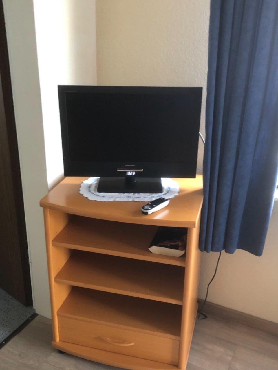 Der Wohn-Essbereich ist mit einer Sitzgruppe, TV und einer Einbauküche versehen. Die Küche ist mit diversen Küchenutensilien, Wasserkocher & Kaffeemaschine bestückt.