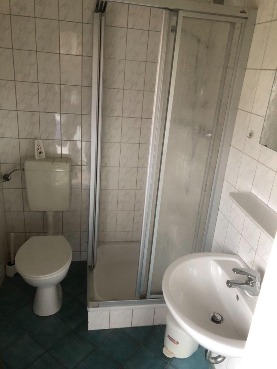 Das Badezimmer ist mit einer Dusche und einem WC.