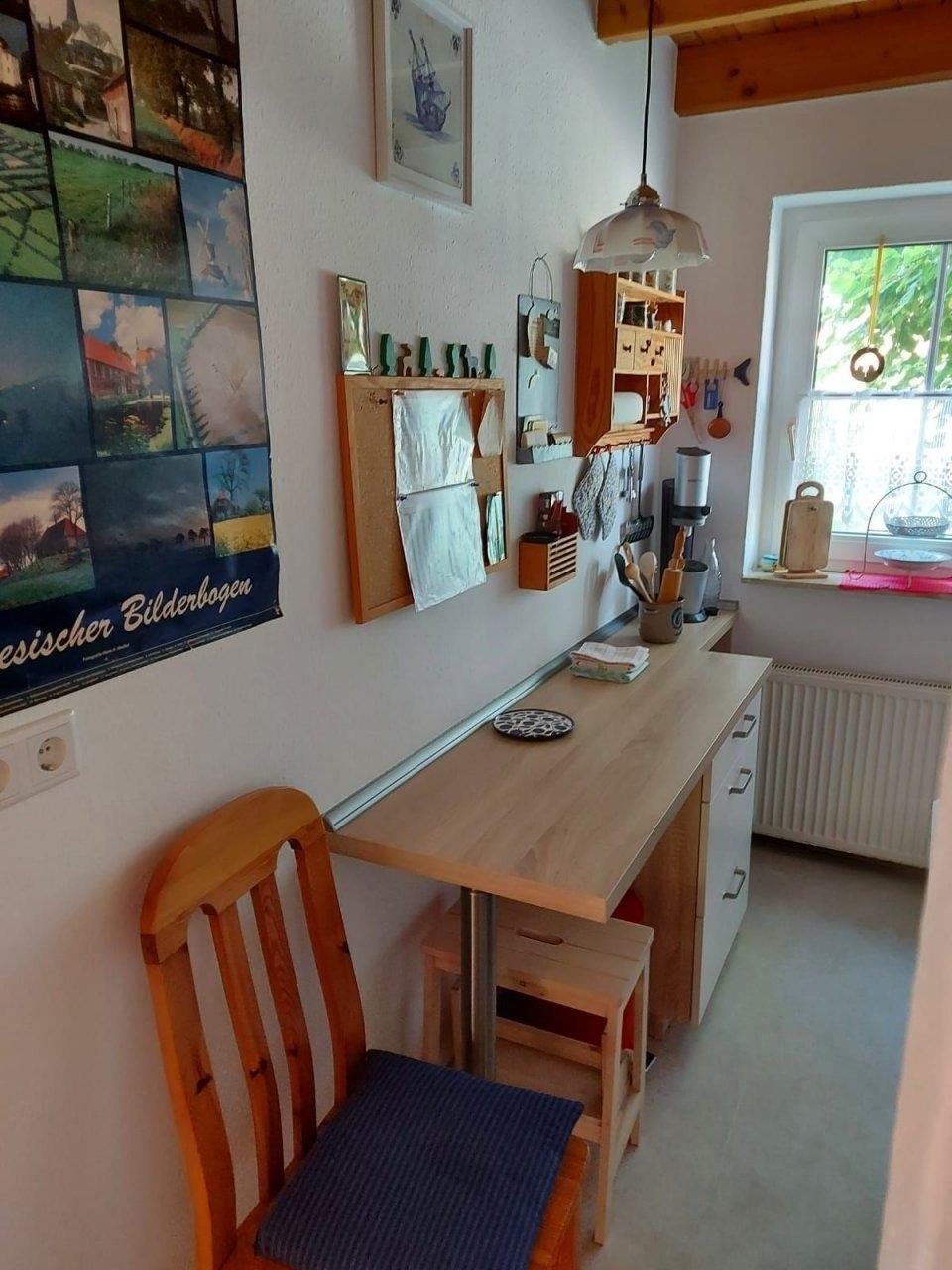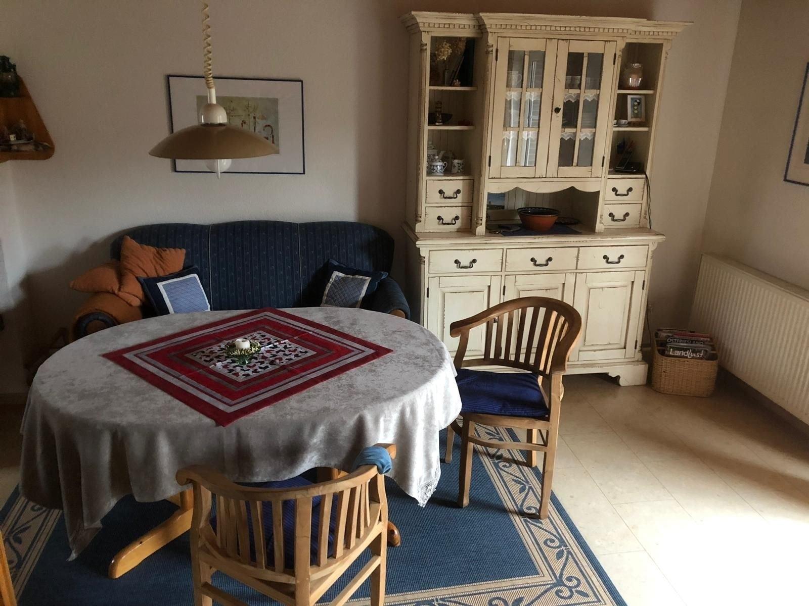 Der Wohn-Essbereich sorgt für ruhige und entspannte Abende. Die Küche ist großzügig ausgestattet wie z.B. mit einer Kaffeemaschine, Wasserkocher und vielem mehr. Die beiden Schlafzimmer sind ausgestattet mit einem Doppelbett und das zweite mit zwei Einzelbetten für ruhige Nächte ( Bettwäsche kann optional , pro Person 12€, mit zugebucht werden ).