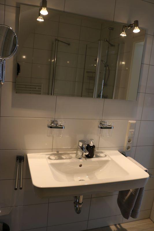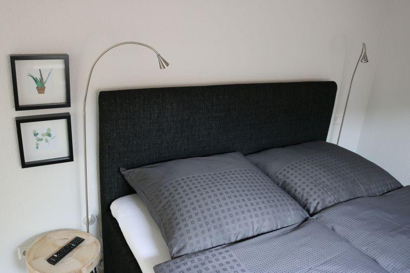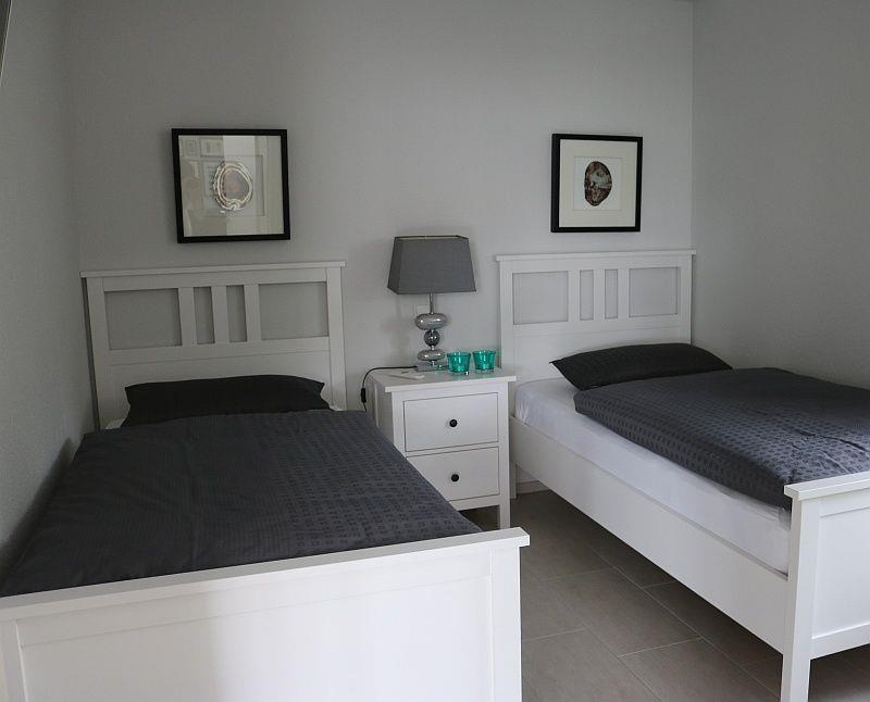 Es gibt 2 Schlafräume, einer mit Boxspring-Doppelbett und 2. TV und ein weiterer mit 2 Einzelbetten, ebenfalls mit einem LED Fernseher sowie ein modernes Bad mit ebenerdiger Dusche.