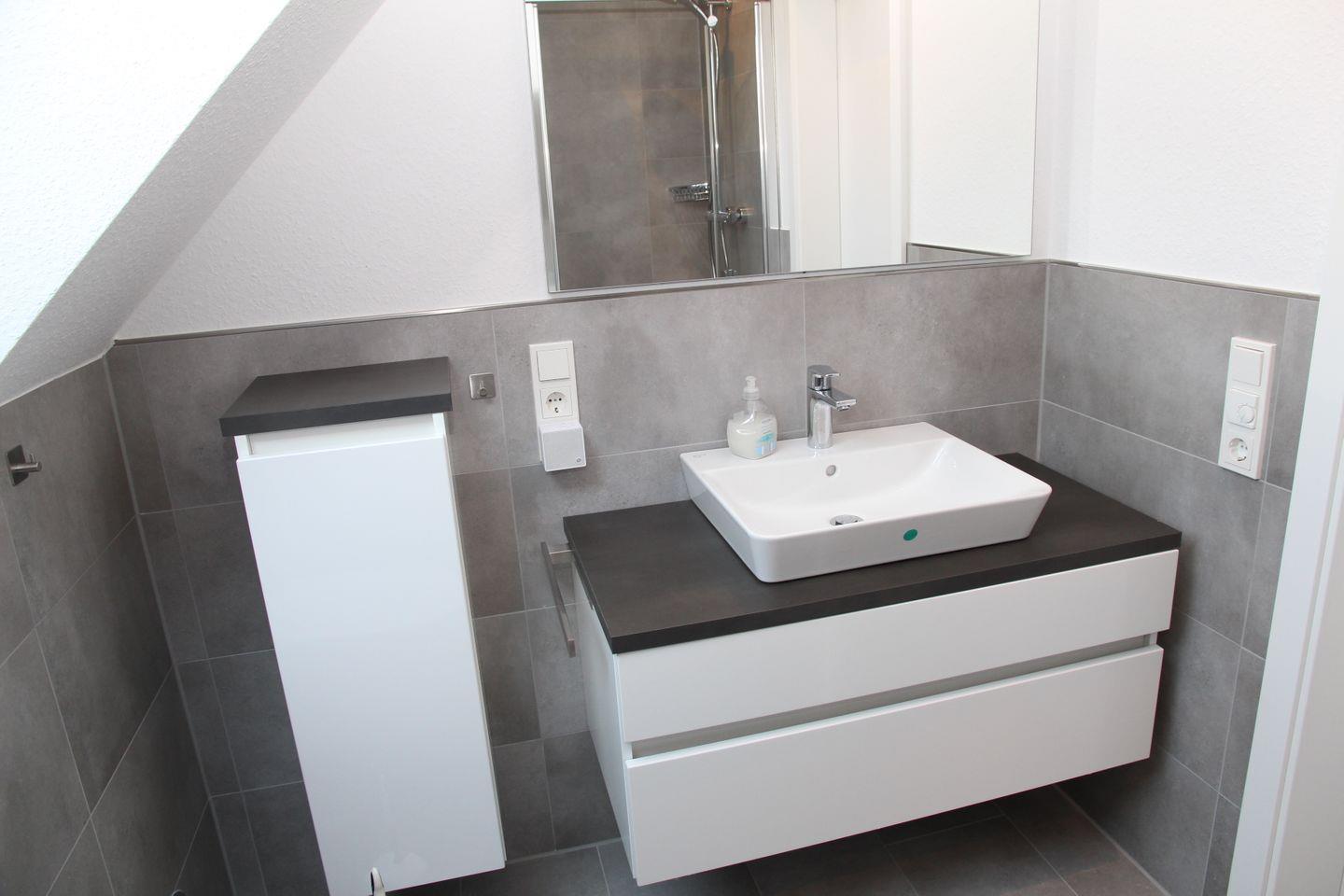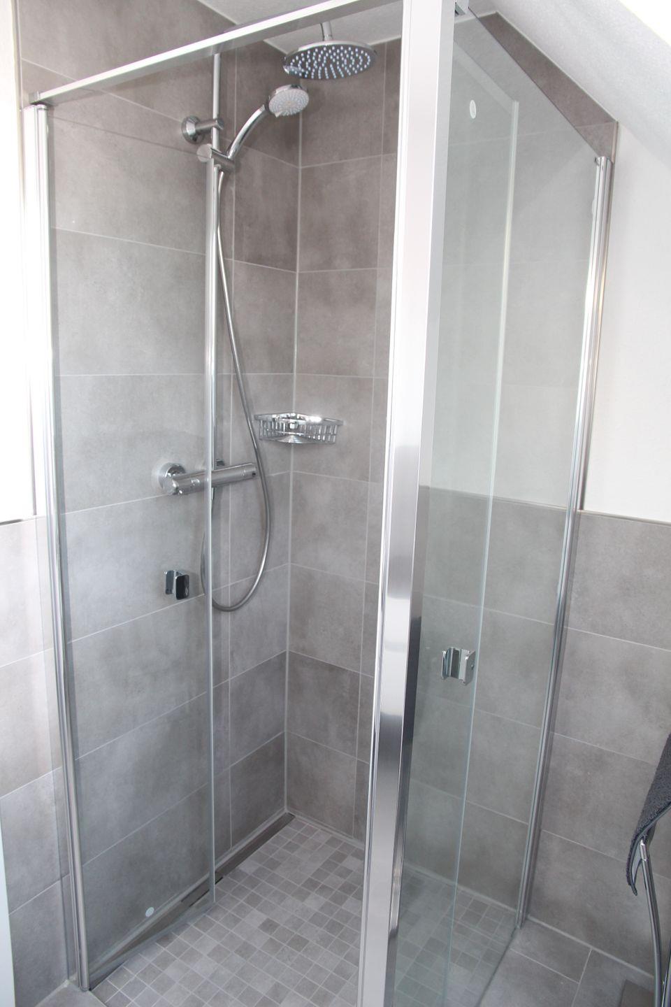 Ebenfalls auf dieser Etage befindet sich ein Schlafzimmer mit einem Doppelbett, einem weiteren Flachbildfernseher und großzügigen Verstaumöglichkeiten für Ihr Gepäck. Nebenan befindet sich das Duschbad mit ebenerdiger Dusche und tiefem Einstieg.