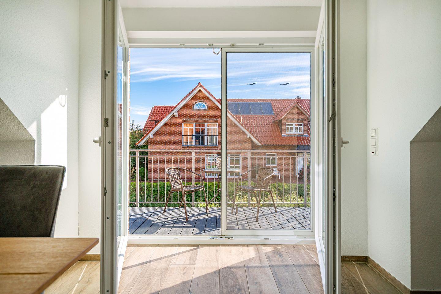 Diese hochwertig eingerichtete Wohnung (Fertigstellung Februar 2022) bietet einen wunderschönen Blick auf einen Nebenarm des Greetsieler Sieltiefs. Der lichtdurchflutete Wohnbereich mit großem U-Sofa und Flachbildfernseher lädt zu erholsamen Stunden mit der ganzen Familie, zu zweit oder auch alleine ein. Direkt vom Wohnbereich aus können Sie auch auf den möblierten Balkon treten.