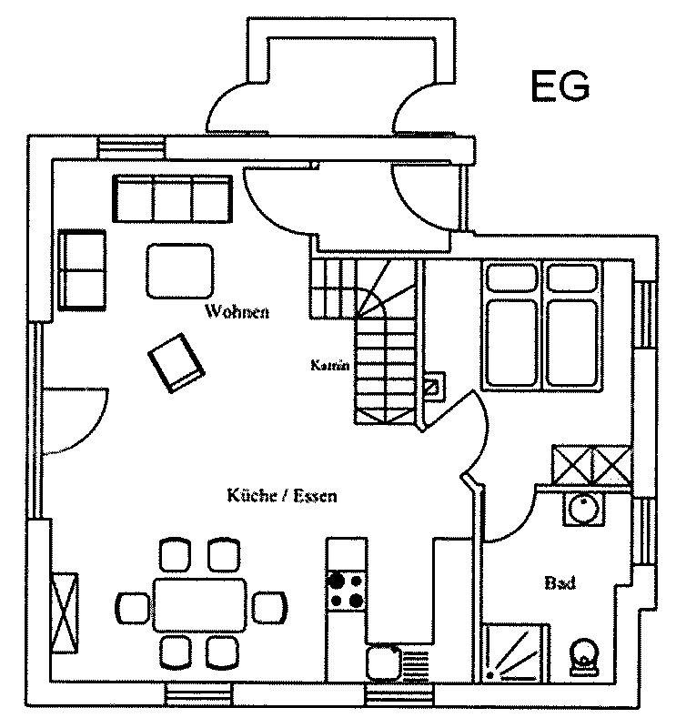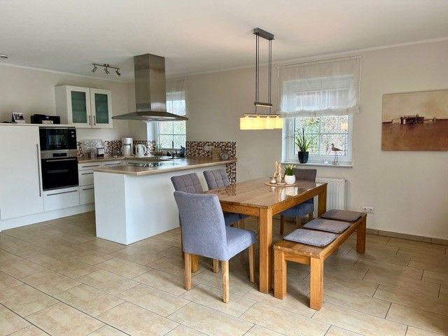 Das Haus ist sehr geschmackvoll und vollständig eingerichtet. Im Erdgeschoss befindet sich der großzügige Wohn-/Essraum (schwenkbarer LED-TV) mit angrenzender großzügiger Küche inkl. Induktionskochfeld, Backofen, Geschirrspüler, große Kühl-/ Gefrierkombination, Mikrowelle, Kaffeemaschine, Wasserkocher, Eierkocher, Doppelwaffeleisen.