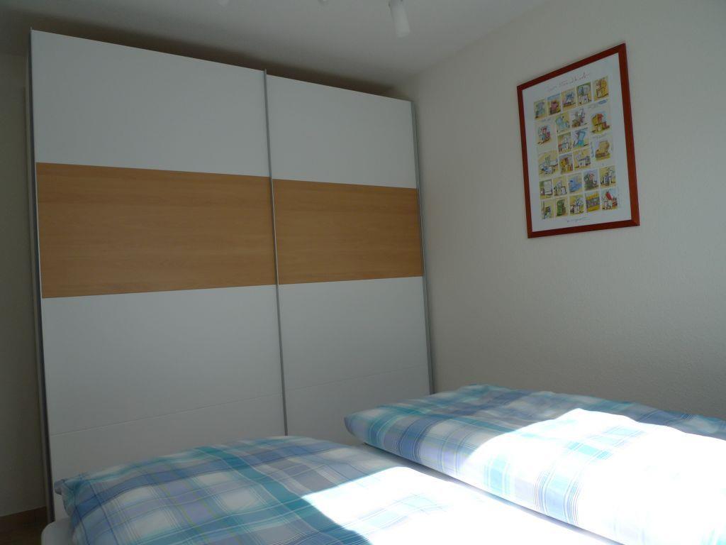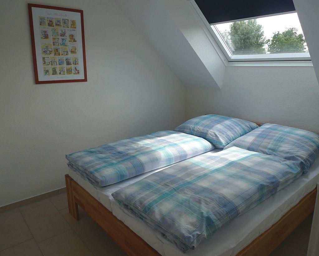 Die Wohnung verfügt über 3 Schlafräume. 1 Schlafzimmer mit einem Doppelbett 1,60m x 2 m. 1 Schlafzimmer mit einem Einzelbett 0,90m x 2 m und ein weiteres Schlafzimmer im ausgebauten Dachgeschoss mit zwei Einzelbetten 0,90m x 2m außerdem mit Sofa und TV-Gerät. Kinderbett und Hochstuhl stehen kostenlos zur Verfügung! Ferner gibt es ein Duschbad und eine Waschmaschine.