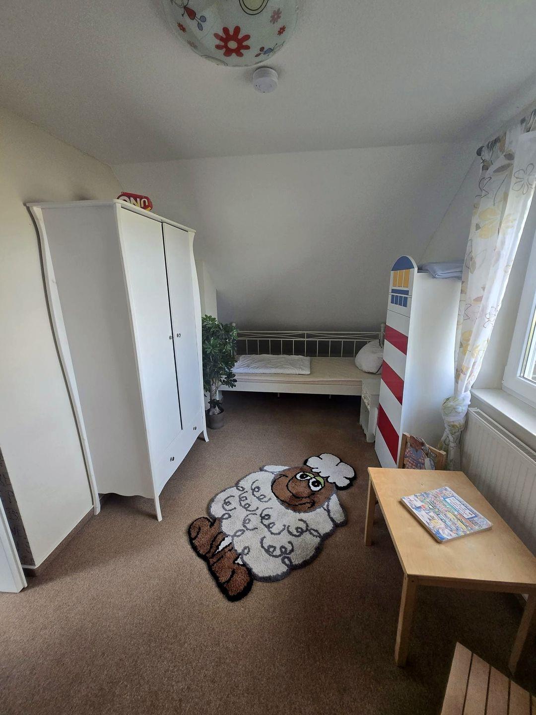 Das Haus verfügt über 3 Schlafzimmer (ein Schlafzimmer ist mit einem LCD-TV ausgestattet - Anschlüsse sind in allen Schlafräumen vorhanden), eines der Schlafräume befindet sich im Erdgeschoss (Doppelbett 2x2m mit verstellbaren Lattenrosten), die beiden anderen Schlafzimmer befinden sich im Obergeschoss. Alle Schlafzimmer verfügen über Außenjalousien. Ein Schlafzimmer dort ist mit einem Doppelbett ausgestattet (2x2m), das andere mit 2 Einzelbetten (2x0,90 m). Das Kinderbett kann in den oberen Schlafräumen aufgestellt werden. Ein Duschbad ist behindertengerecht mit Duschhocker und Wandhalterung ausgestattet.