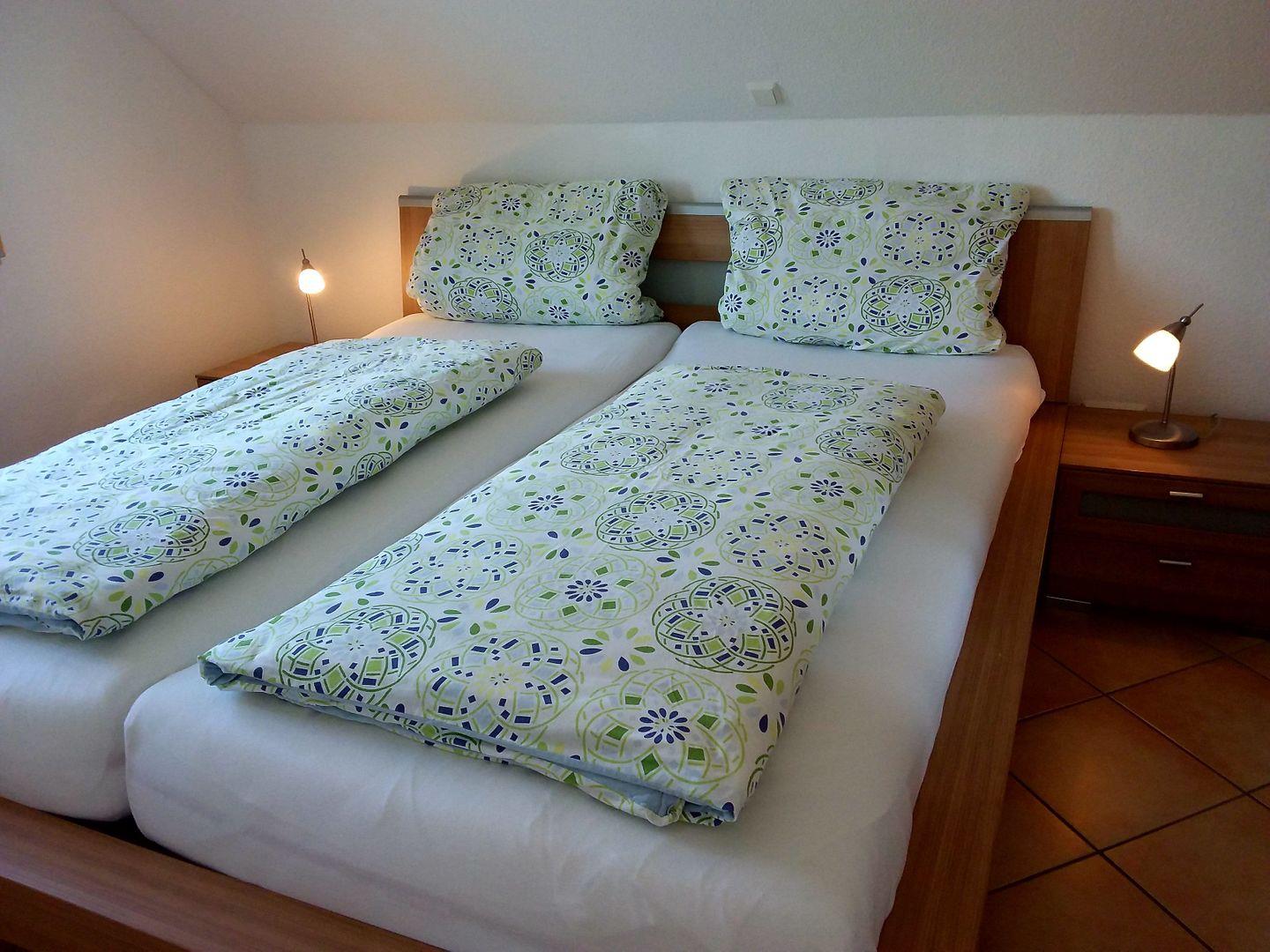 Der 2. Schlafraum befindet sich in der großen Galerie (2*Einzelbetten). Die Galerie ist mit Laminatfußboden ausgelegt. Außerdem finden Sie hier einen gemütlichen Ohrensessel und einen weiteren Fernseher.