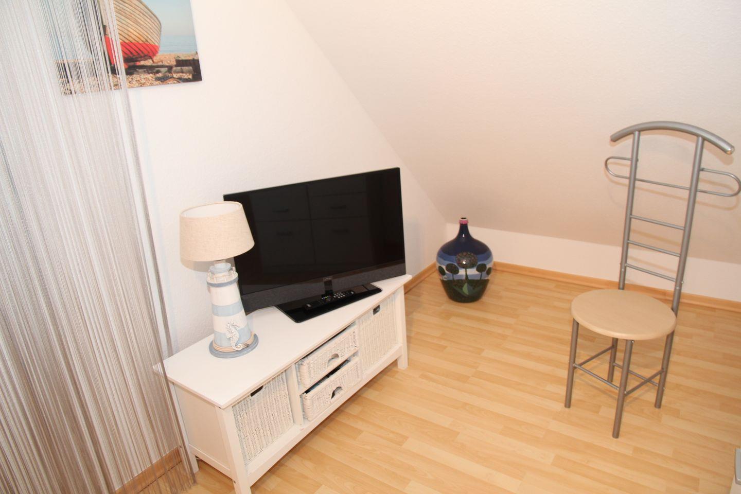 Ein Schlafzimmer, welches sich im OG befindet, ist zudem mit einem 2. Fernsehgerät ausgestattet. Vom Schlafzimmer aus gelangt man direkt ins angrenzende Badezimmer mit Dusche.