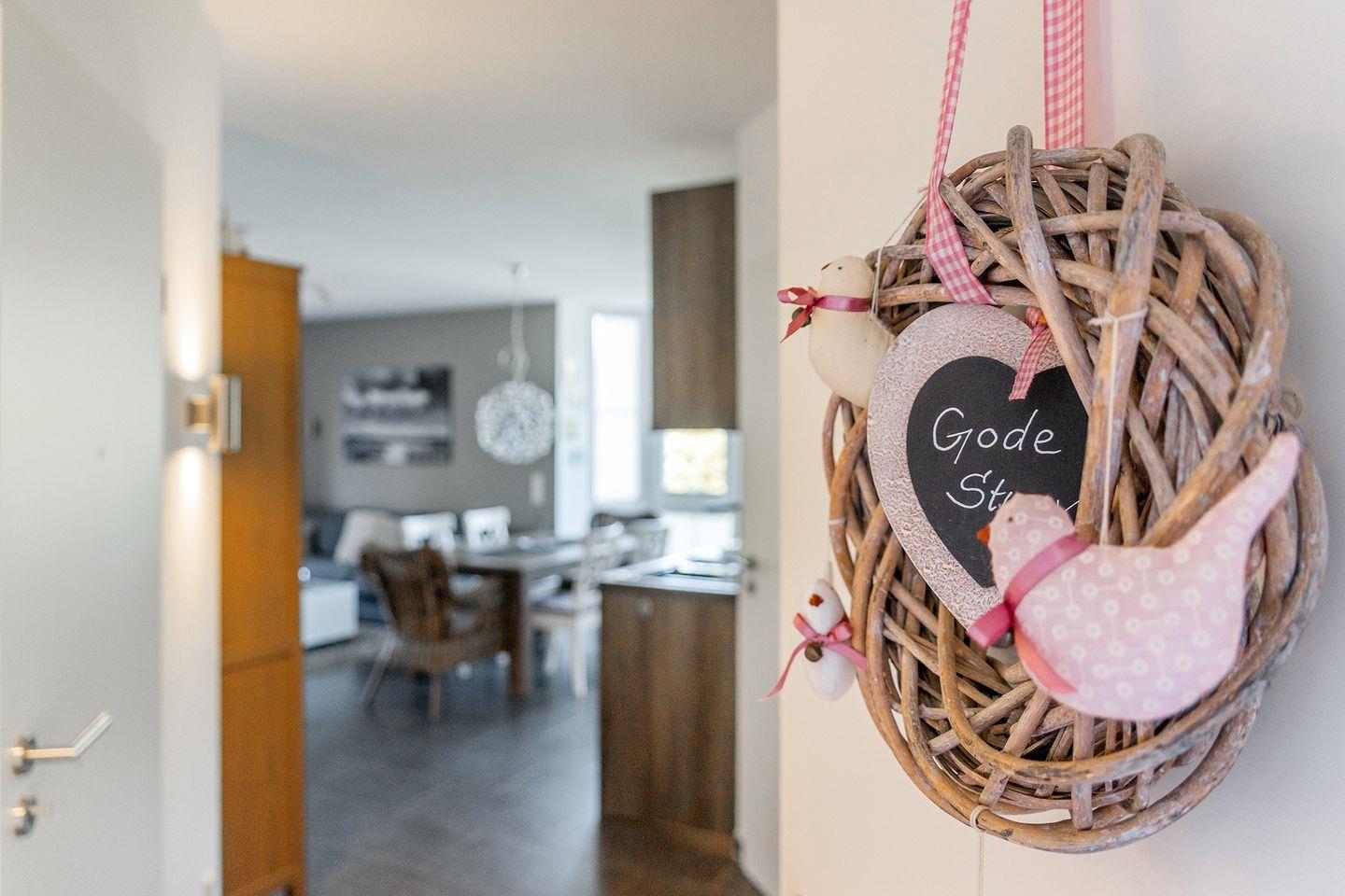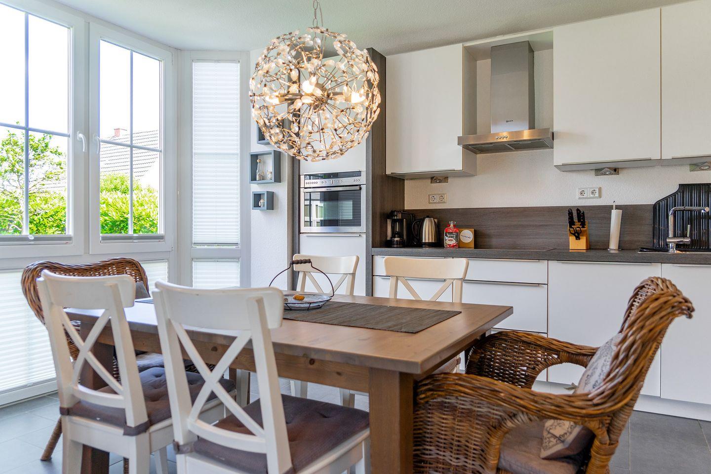 Die Nichtraucherwohnung verfügt über einen großzügigen Wohn-/Essbereich mit Flachbild-TV, DVD- und Musikanlage (CD, USB, MP-3), Gesellschaftsspielen, sowie Infomaterial zur Region. Die hochwertige Küche ist reichhaltig ausgestattet mit Backofen-/Mikrowellenkombi, Kühl- und Gefrierschrank, Geschirrspülmaschine und SENSEO-Kaffeepadautomat, Wasser- und Eierkocher, Toaster, Handmixer u.v.m.