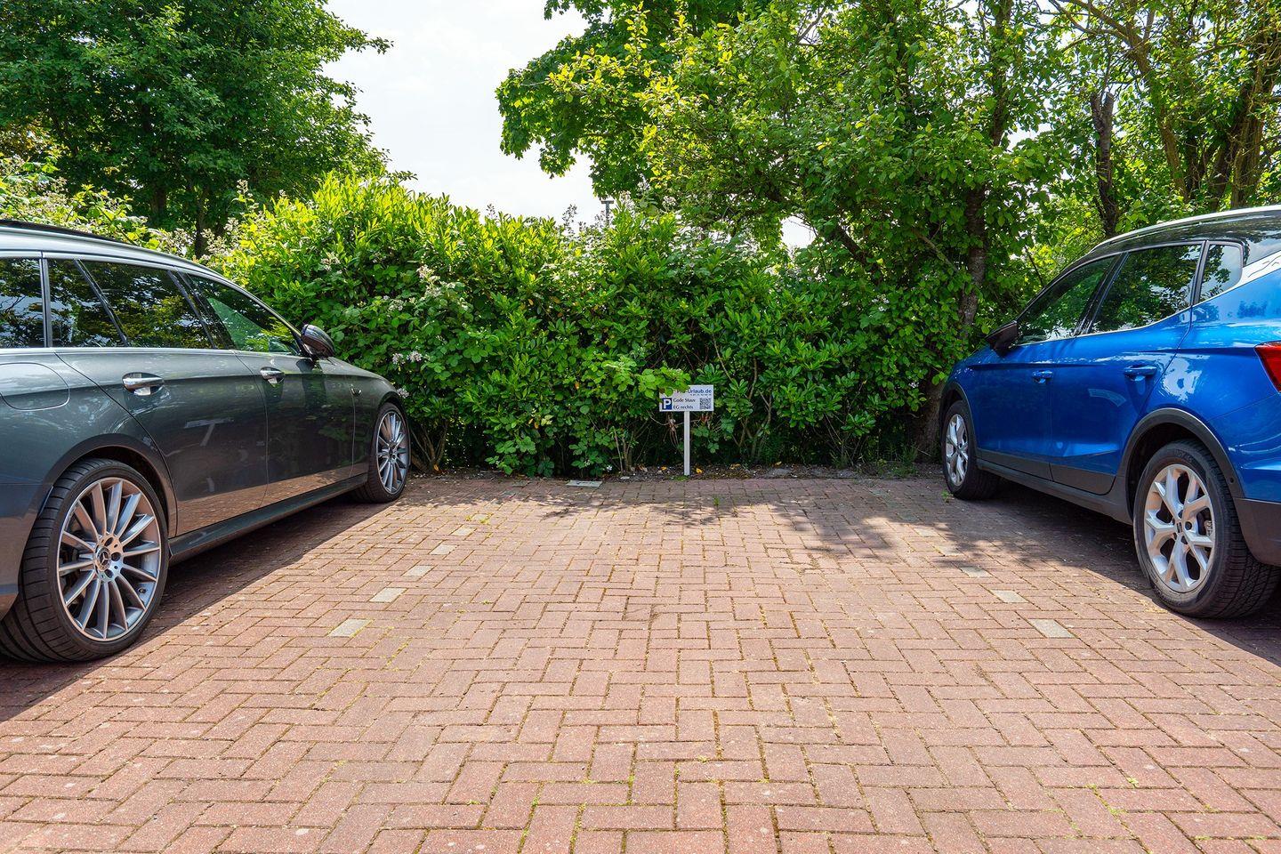 Zur Wohnung gehört ein PKW-Stellplatz am Haus und ein Abstellhaus, in dem Sie Ihre Fahrräder unterstellen können.