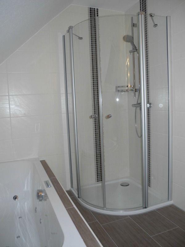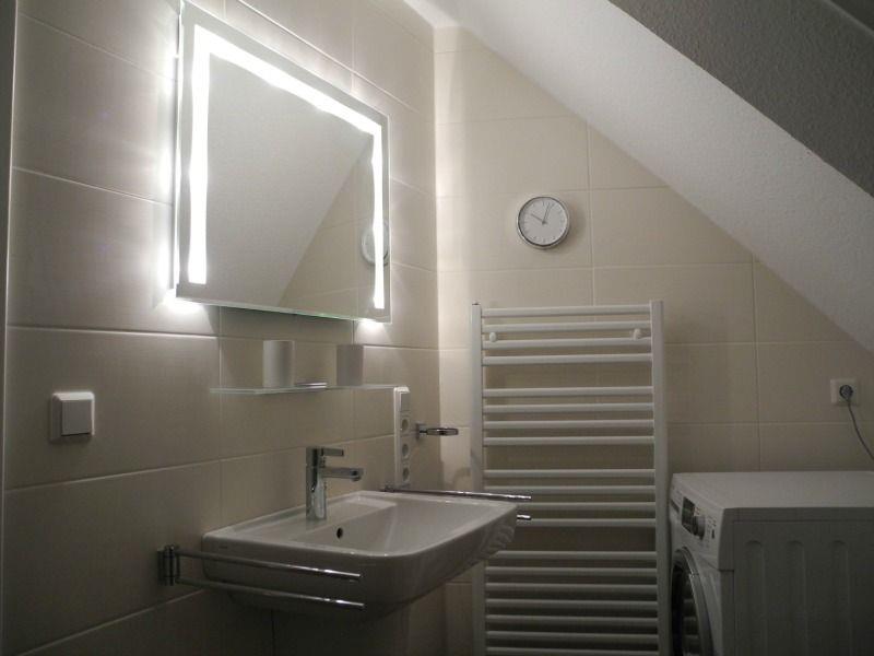 Ein Highlight im Grachterum ist das gemütliche und hochwertige Badezimmer mit einer eingebauten Badewanne, Runddusche, Waschtrockner (Kombination aus Waschmaschine und Trockner) und einem Haartrockner.
