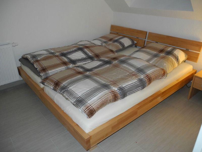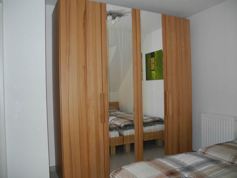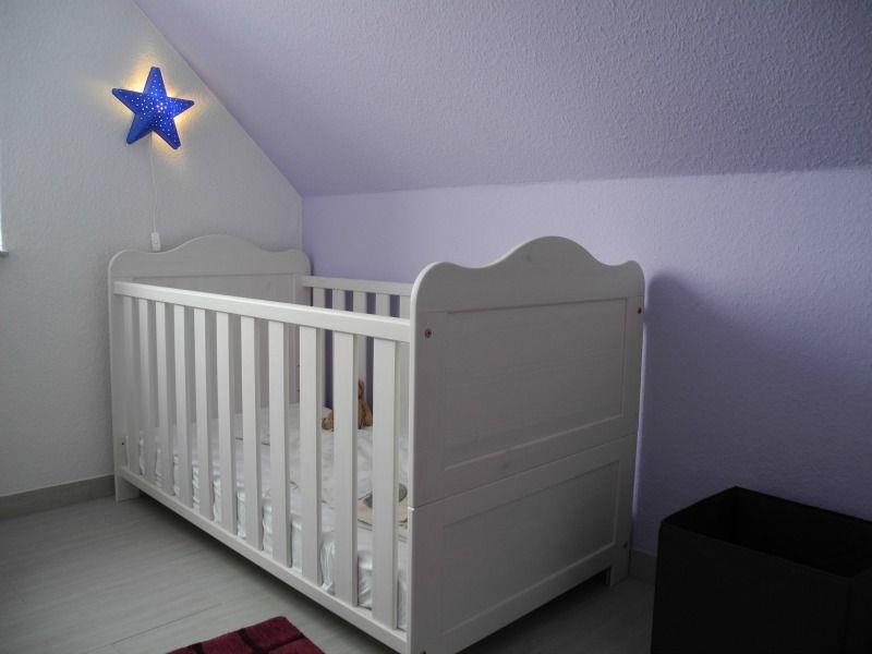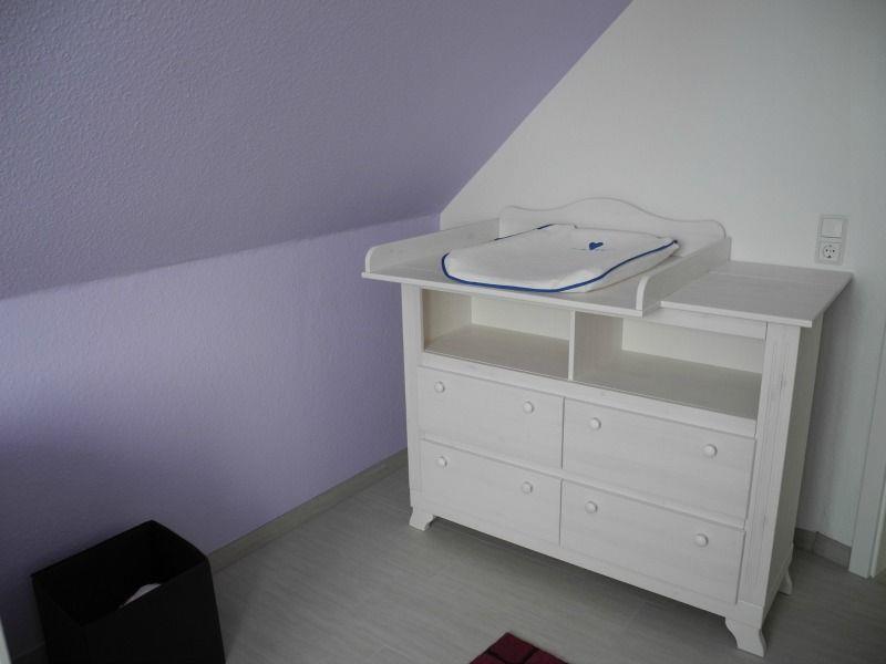 Neben einem vollwertig ausgestatteten Kleinkindzimmer (Babybett, Wickelkommode, Hochstuhl, Spielzeug, kleiner Schreibtisch auch für Erwachsene sowie Multifunktionsdrucker mit Druck-, Kopier- und Scanfunktion [Papier ohne Gewähr], stehen zwei weitere Schlafräume im Ober- und Dachgeschoss zur Verfügung. Das Schlafzimmer im Obergeschoss bietet einen geräumigen Kleiderschrank sowie zwei Einzelbetten (90x200 cm), die auf Wunsch zu einem Doppelbett zusammengeschoben werden können.