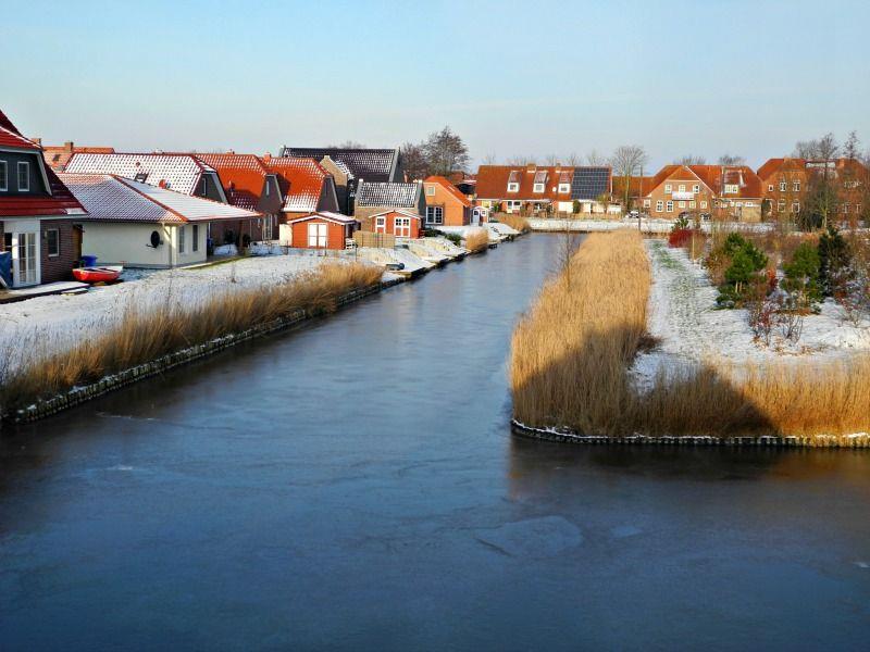 Exklusive Ferienwohnung in Greetsiel mit Balkon, Kamin und Blick auf die Gracht für erholsame Tage am Wasser.