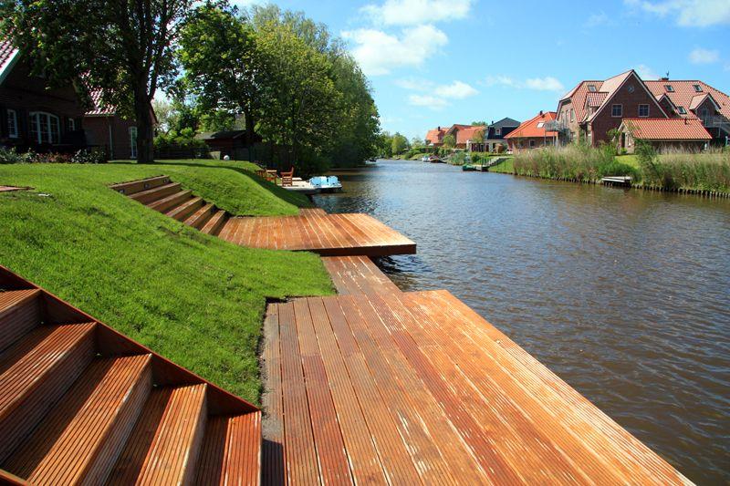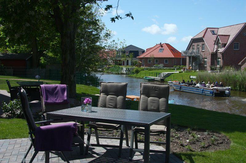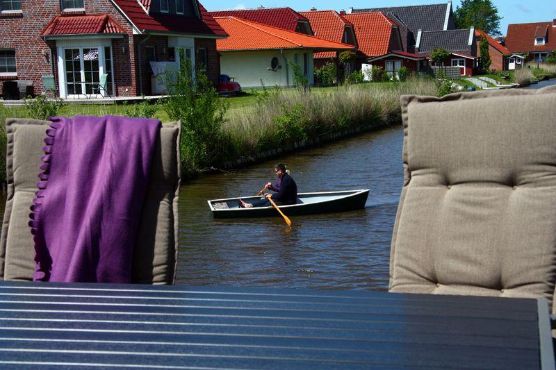 Moderne Ferienwohnung mit eigenem Bootssteg und Terrasse in Greetsiel am Wasser.