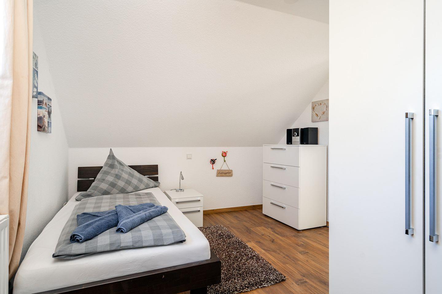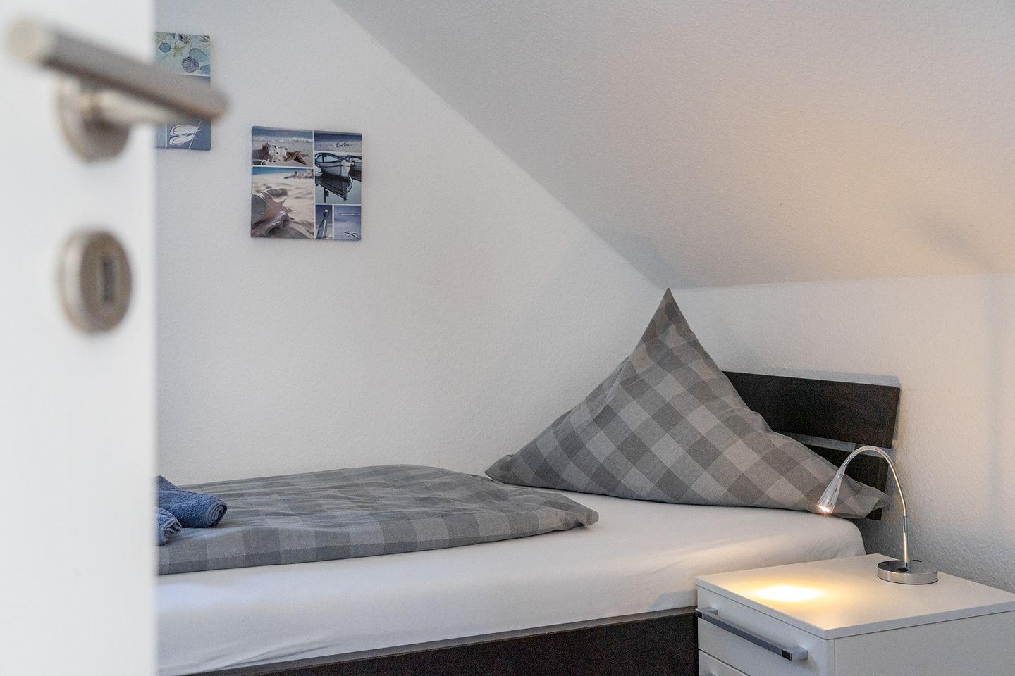 Das Wohnzimmer und alle Schlafräume verfügen über Flachbildschirme mit Satellitenempfang, DVD-Player. Das Schlafzimmer im Erdgeschoss ist vom Wohnbereich und der Küche komplett abgetrennt und verfügt wie ein weiteres Schlafzimmer im Obergeschoss über Doppelbetten (1,80 x 2,00 m). In dem dritten Schlafzimmer befinden sich zwei Einzelbetten (1 x 2,00 m). Die Fenster in den Schlafräumen und viele weitere Fenster wurden mit Fliegengittern versehen.