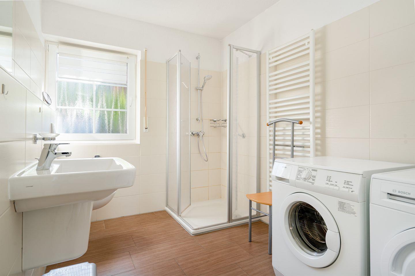 Es gibt ein Bügeleisen, Bügelbrett, Wäscheständer, sowie einen Föhn. Im Badezimmer im EG befinden sich Waschmaschine und Trockner.
