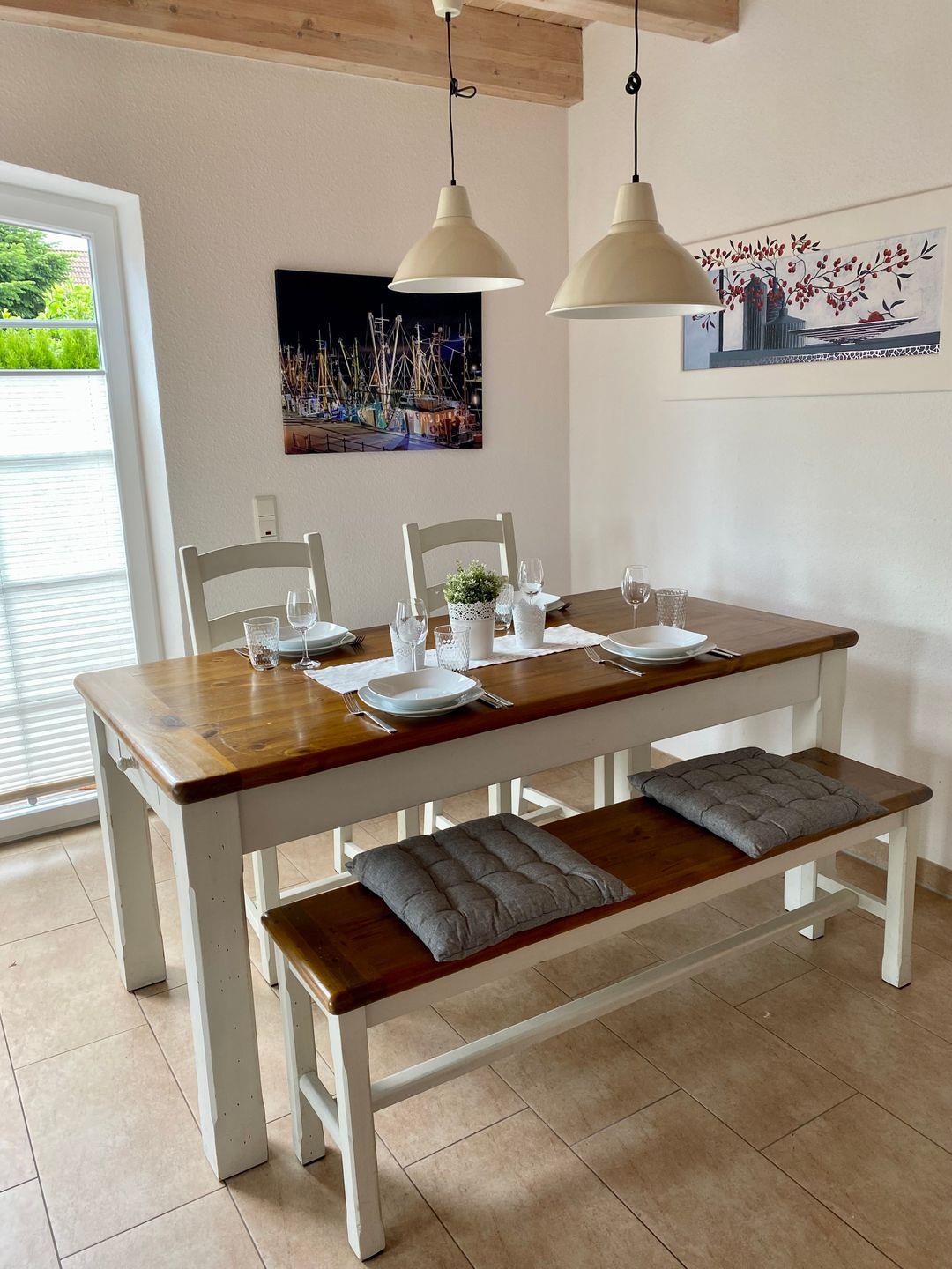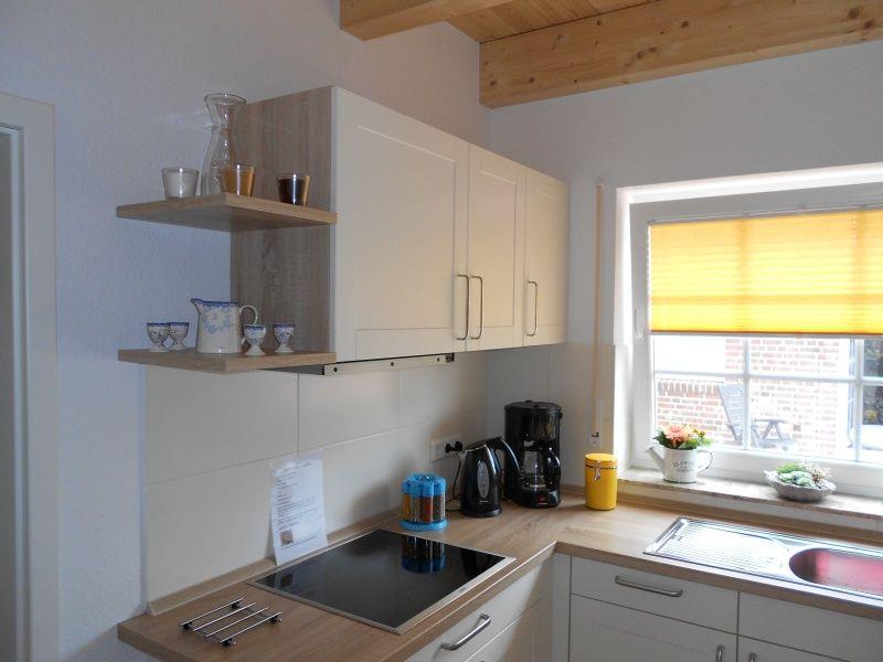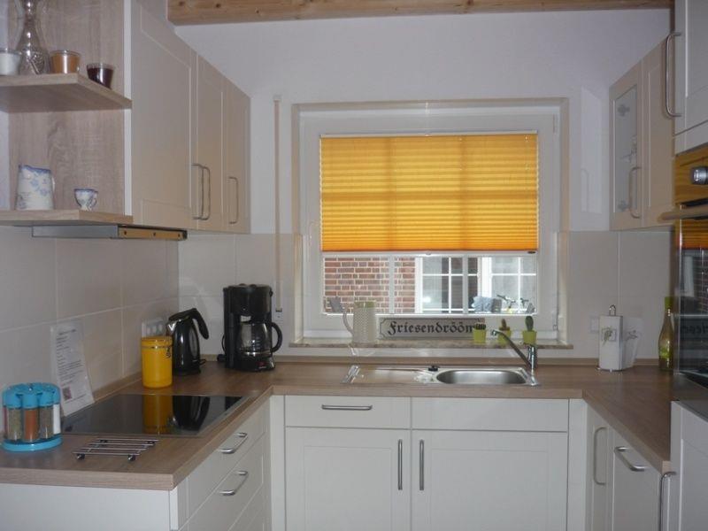 In der gut ausgestatteten Küche finden sie Geschirrspülmaschine, Mikrowelle, Backofen, Kühlschrank mit Gefrierfach, Kaffeemaschine, Pad-Maschine, Toaster, Mixer, Eierkocher, Wasserkocher, Waffeleisen u.v.m. Natürlich darf auch das typisch ostfriesische Teeservice nicht fehlen.