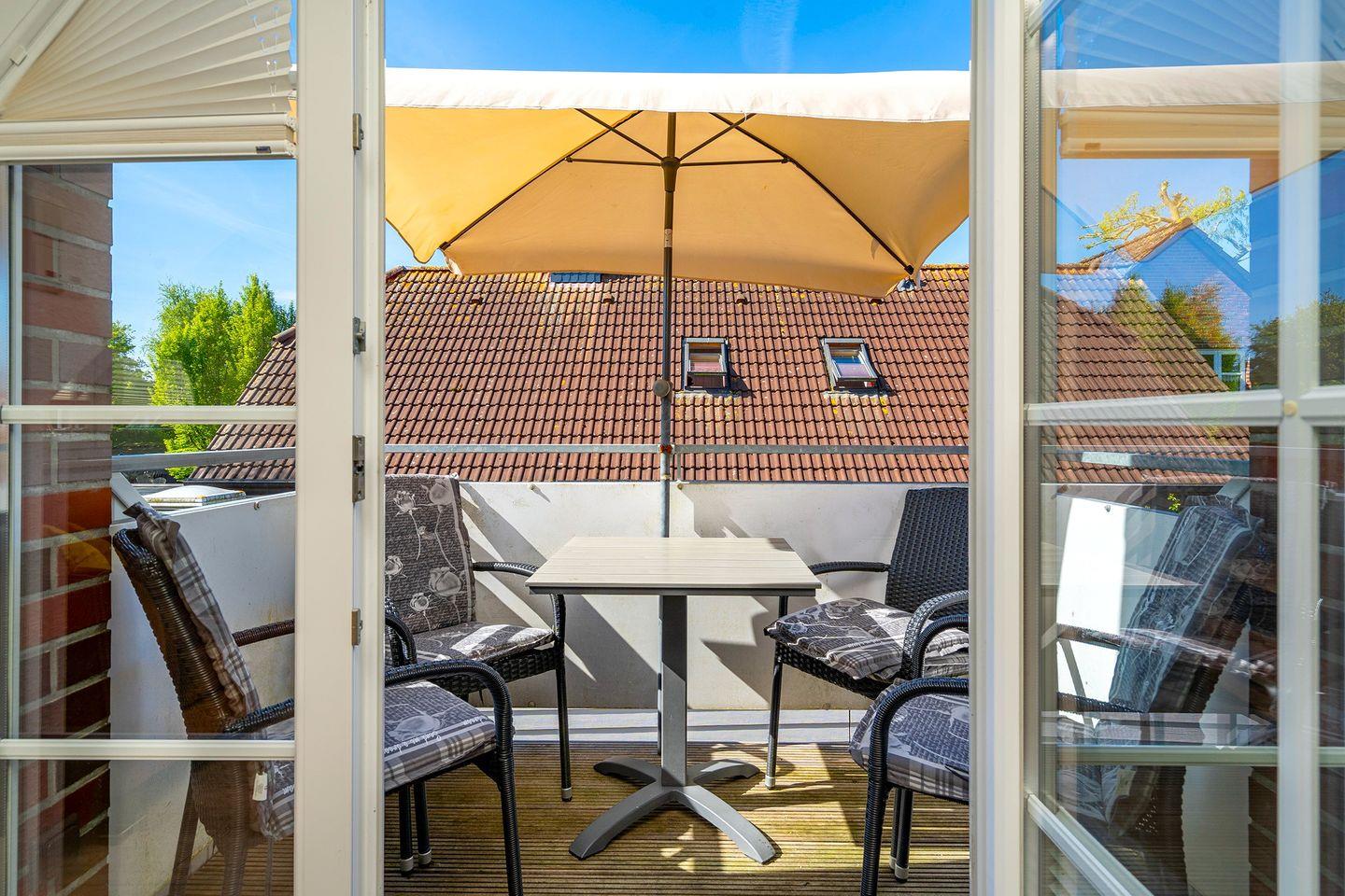Der möblierte Balkon steht zum ausgiebigen Sonnenbaden zur Verfügung.