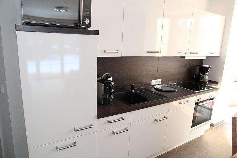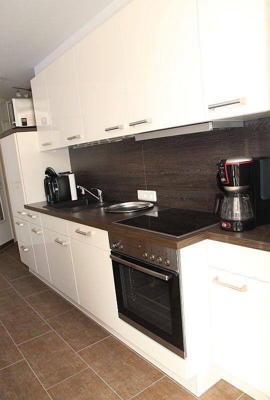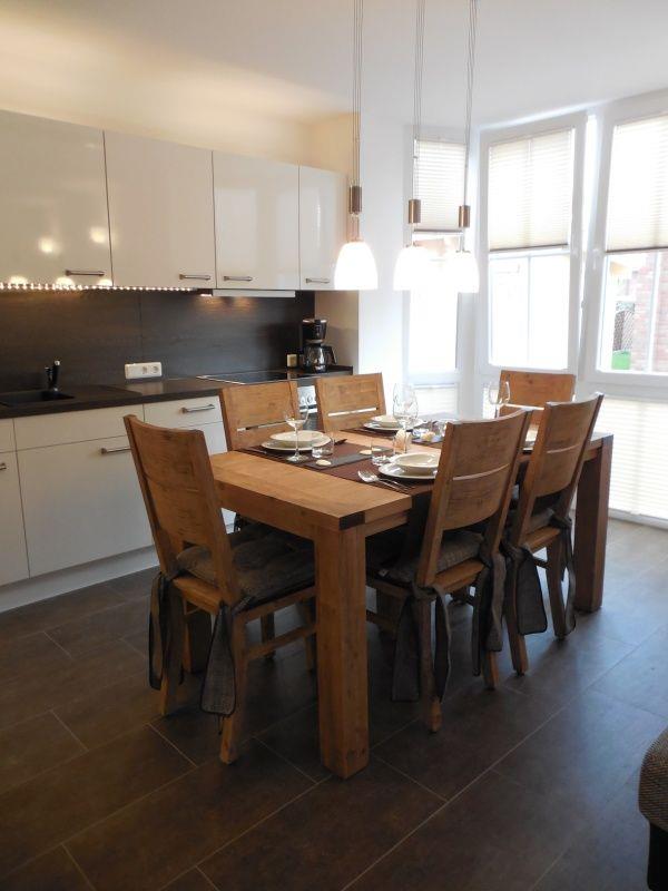 Die Nichtraucherwohnung mit lichtdurchflutetem Erker (Plissees) verfügt über einen schicken Wohn-/Essbereich mit TV, DVD- und Musikanlage (CD, USB, MP3). Die hochwertige Küche ist reichhaltig ausgestattet mit Backofen-/Mikrowelle, Kühl- und Gefrierfach, Geschirrspülmaschine, Kaffeemaschine, Tassimo-Kaffeepadautomat, Mixer, Wasserkocher, Toaster, u.v.m.