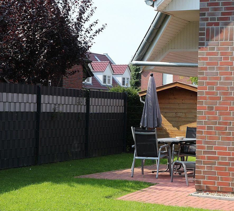 Ein kleiner Garten mit gemütlicher Terrasse, großem Weber-Grill (Holzkohle) sowie Mobiliar und Sonnenschirm, laden zu einem erholsamen Urlaub ein. Die Terrasse ist fertig.