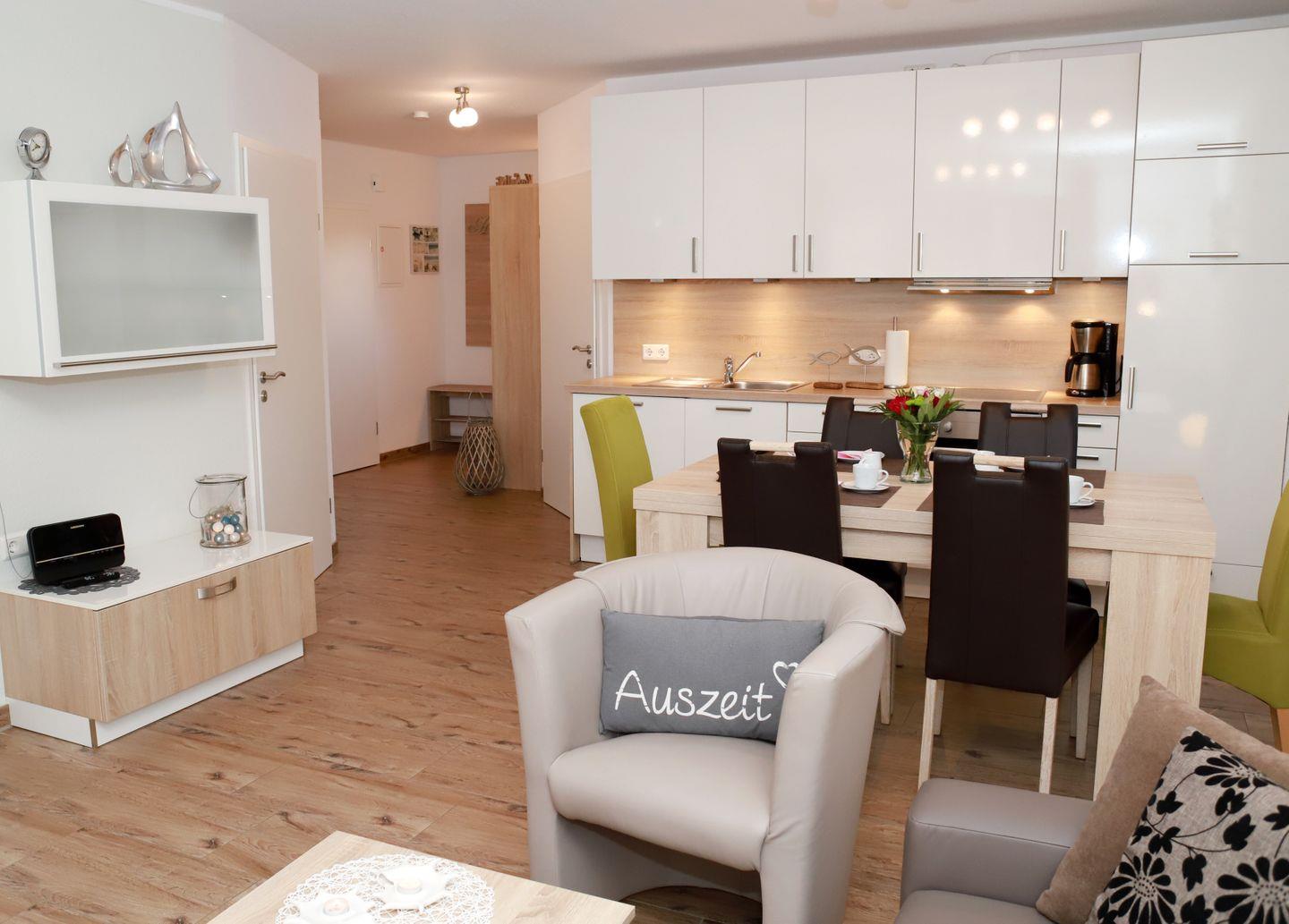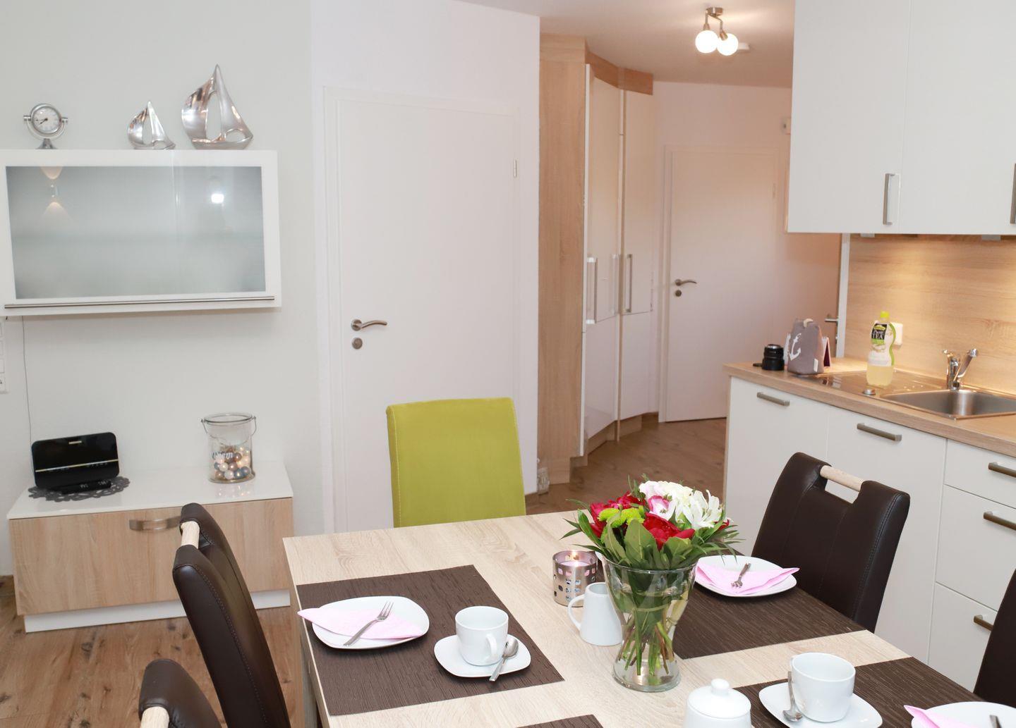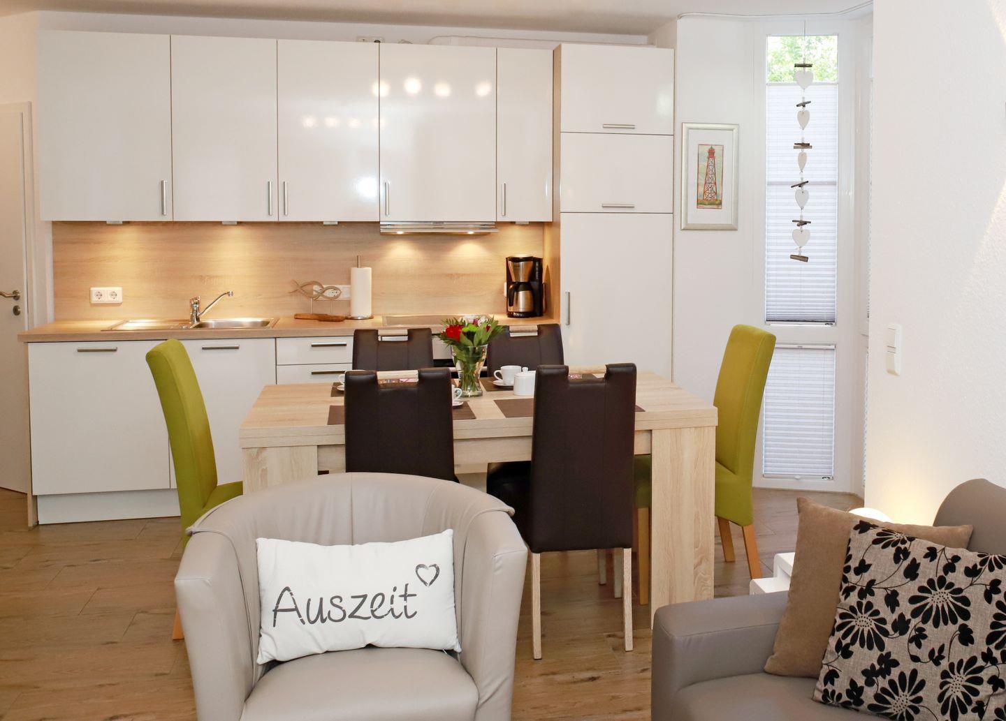 Die moderne Küche bietet eine reichhaltige Ausstattung, z. B. Backofen, Mikrowelle, Kühlschrank mit Gefrierfach, Geschirrspülmaschine, Waffel-/Sandwitcheisen, Toaster, Handmixer, Pürierstab, Wasserkocher, Eierkocher, Küchenwaage, eine große Auswahl an Koch- und Backgeschirr, Geschirr und Gläsern. Und für alle Kaffeeliebhaber gibt es eine Philipps-Kaffeemaschine, French-Press oder Handfilter sowie einen separaten Milchaufschäumer.