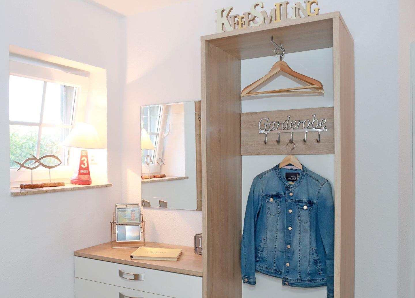 Im Eingangsbereich befinden sich großzügige Schränke und Garderoben mit viel Stauraum. Staubsauger, Wäscheständer, Bügeleisen, Besen, Swiffer, Kehrblech, Eimer und vieles mehr sind vorhanden.