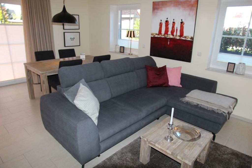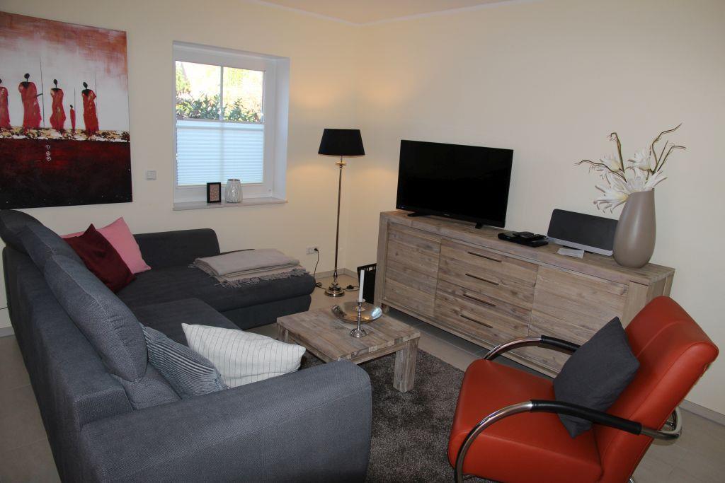 Die Nichtraucherwohnung verfügt über einen schicken Wohn-/Essbereich mit einem Flachbildfernseher. Die hochwertige Küche ist reichhaltig ausgestattet mit Backofen, Mikrowelle, Kühlschrank mit Gefrierfach, Geschirrspülmaschine, Kaffeemaschine, Eierkocher, Wasserkocher, Toaster, u.v.m. Für Gäste, die die ostfriesische Gemütlichkeit mit einer Tasse Tee genießen möchten, steht ein komplettes Teeservice bereit.