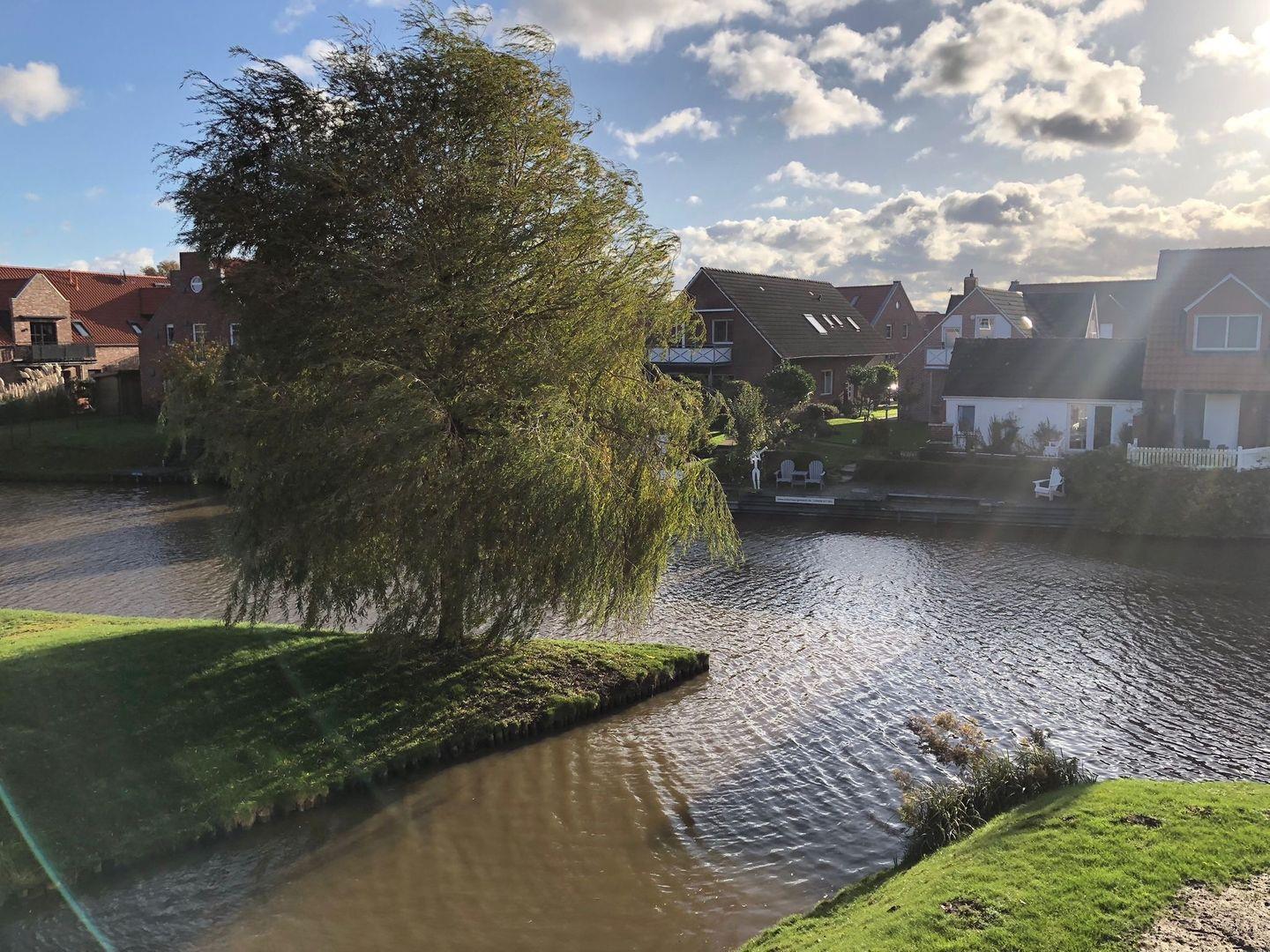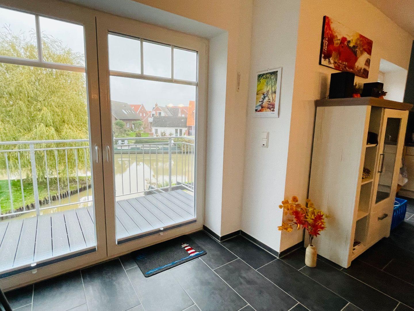 Neue Maisonette Ferienwohnung (OG) in Bestlage, am Ufer der Greetsieler Grachten, nur wenige Gehminuten vom pittoresken Ortskern und den Krabbenkuttern im Fischerhafen entfernt.