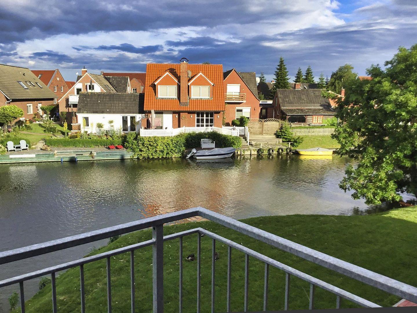 Von der Sitzgruppe im Wohnraum und vom möblierten Balkon aus genießen Sie den Blick aufs Wasser und auf die vorbeifahrenden Boote. Die Sonne begleitet Sie dabei von morgens bis zum Nachmittag.