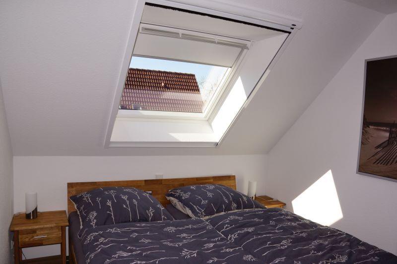Auf der ersten Etage befinden sich zwei Schlafräume, einer mit einem Doppelbett und der andere mit zwei Einzelbetten. Die Fenster lassen sich mit Plissees verdunkeln. Auf der zweiten Etage, in der ausgebauten Galerie, befindet sich ein weiterer Raum (ohne Tür) mit einer gemütlichen Schlafcouch und einem weiteren internetfähigen Smart-TV.