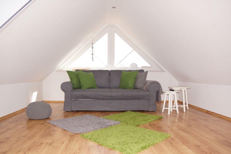 Der Wohnbereich mit seiner gemütlichen Eckgarnitur und dem internetfähigen Smart TV laden zu gemütlichen Abenden auf der Couch ein. Für Abwechslung sorgen die vorhanden Bücher, Hörbücher und Spielesammlung.