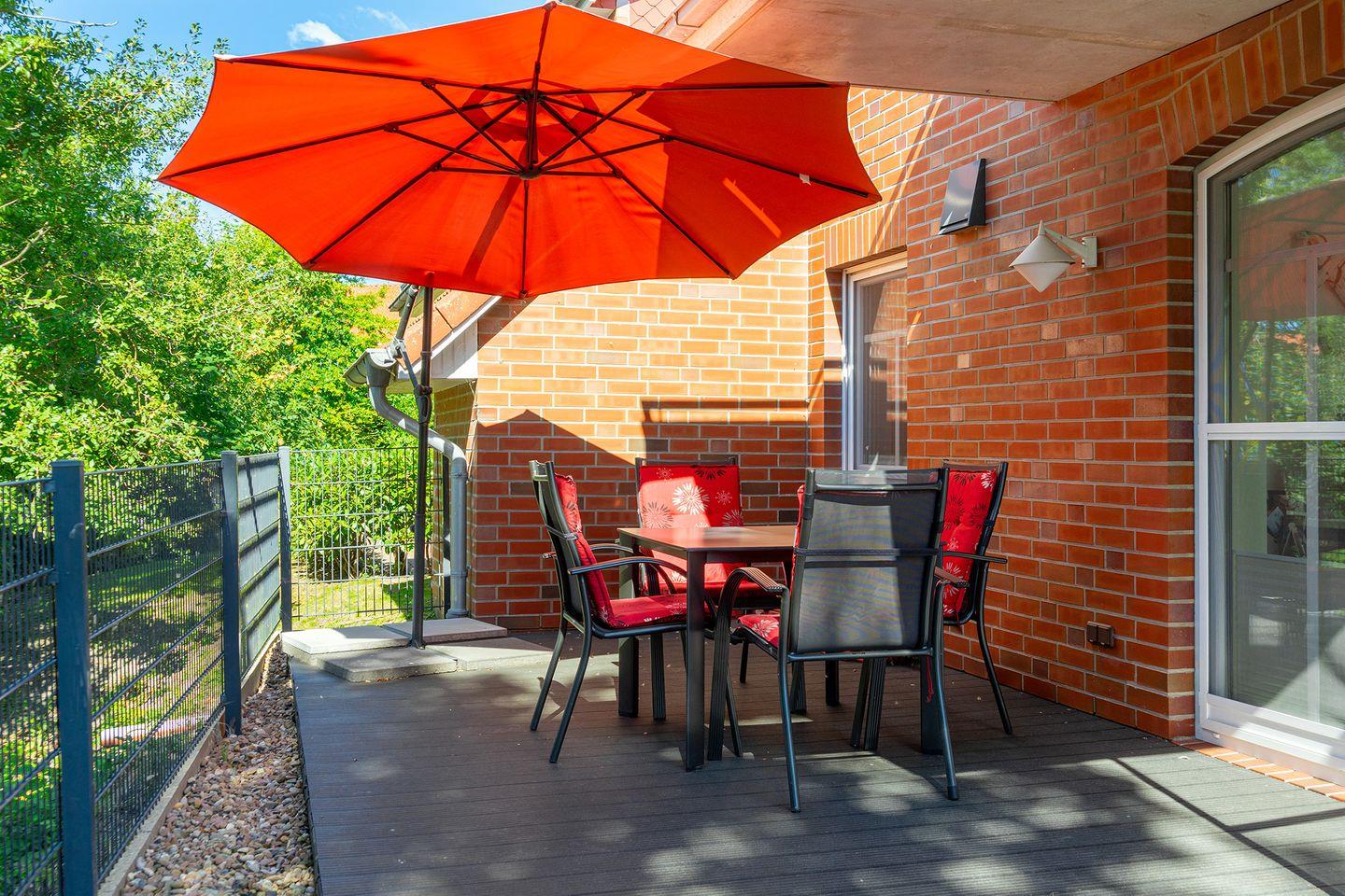 Komfortable Erdgeschosswohnung in Greetsiel mit Terrasse, Garten und direktem Wasserzugang am Gemeinschaftssteg.