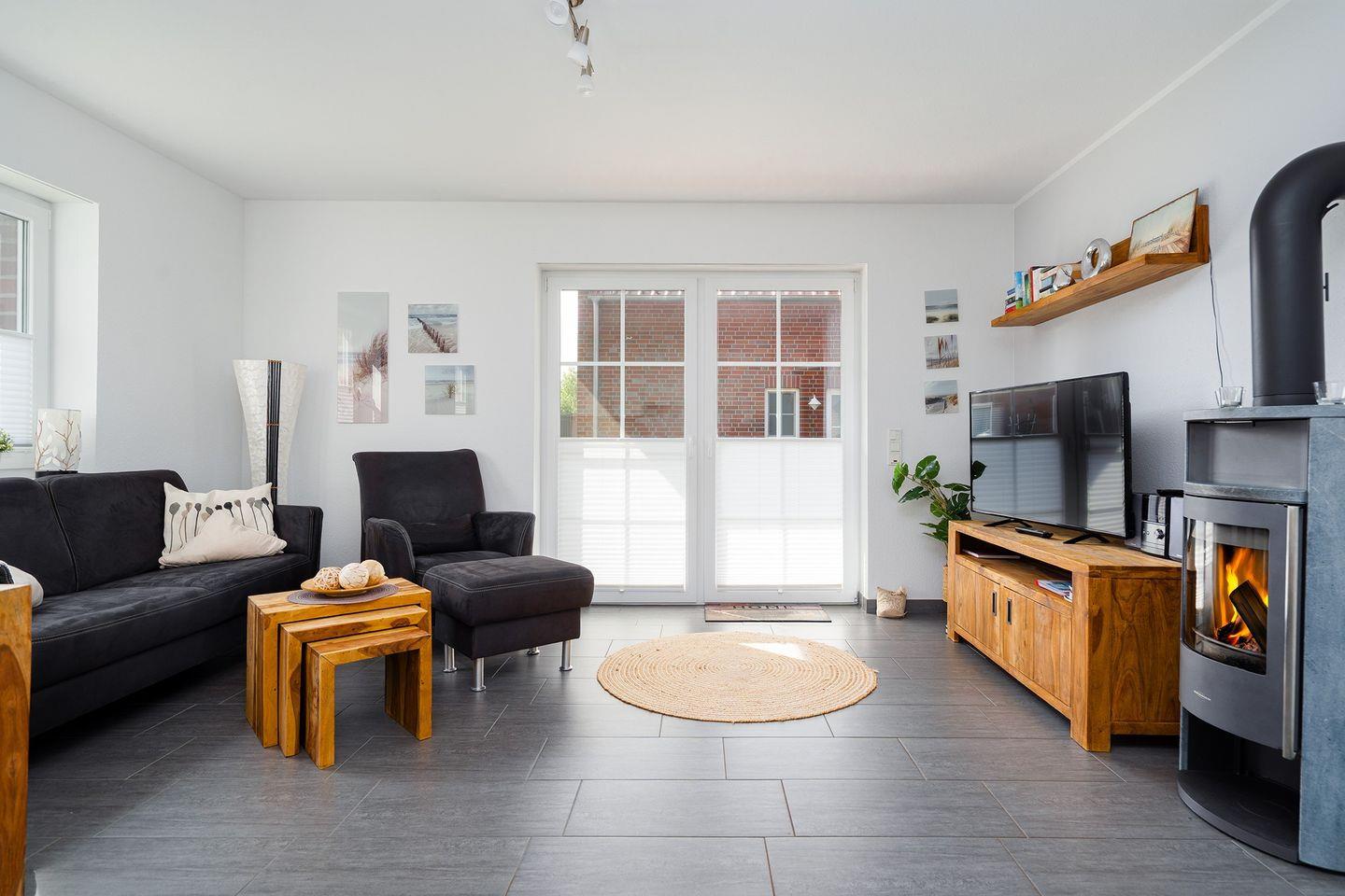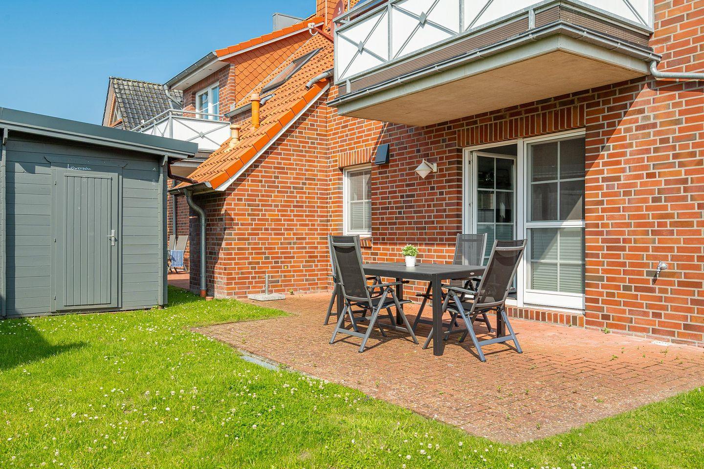 Moderne Ferienwohnung in Greetsiel nahe Zwillingsmühlen mit Terrasse, Garten und WLAN für entspannte Urlaubstage.