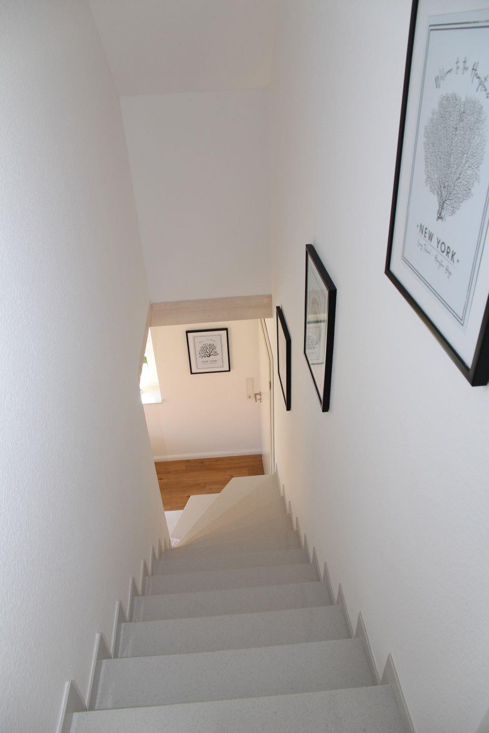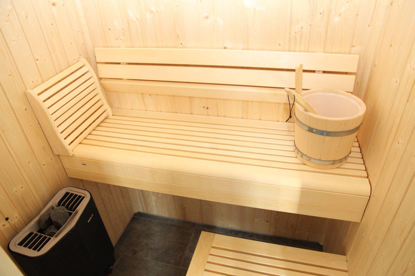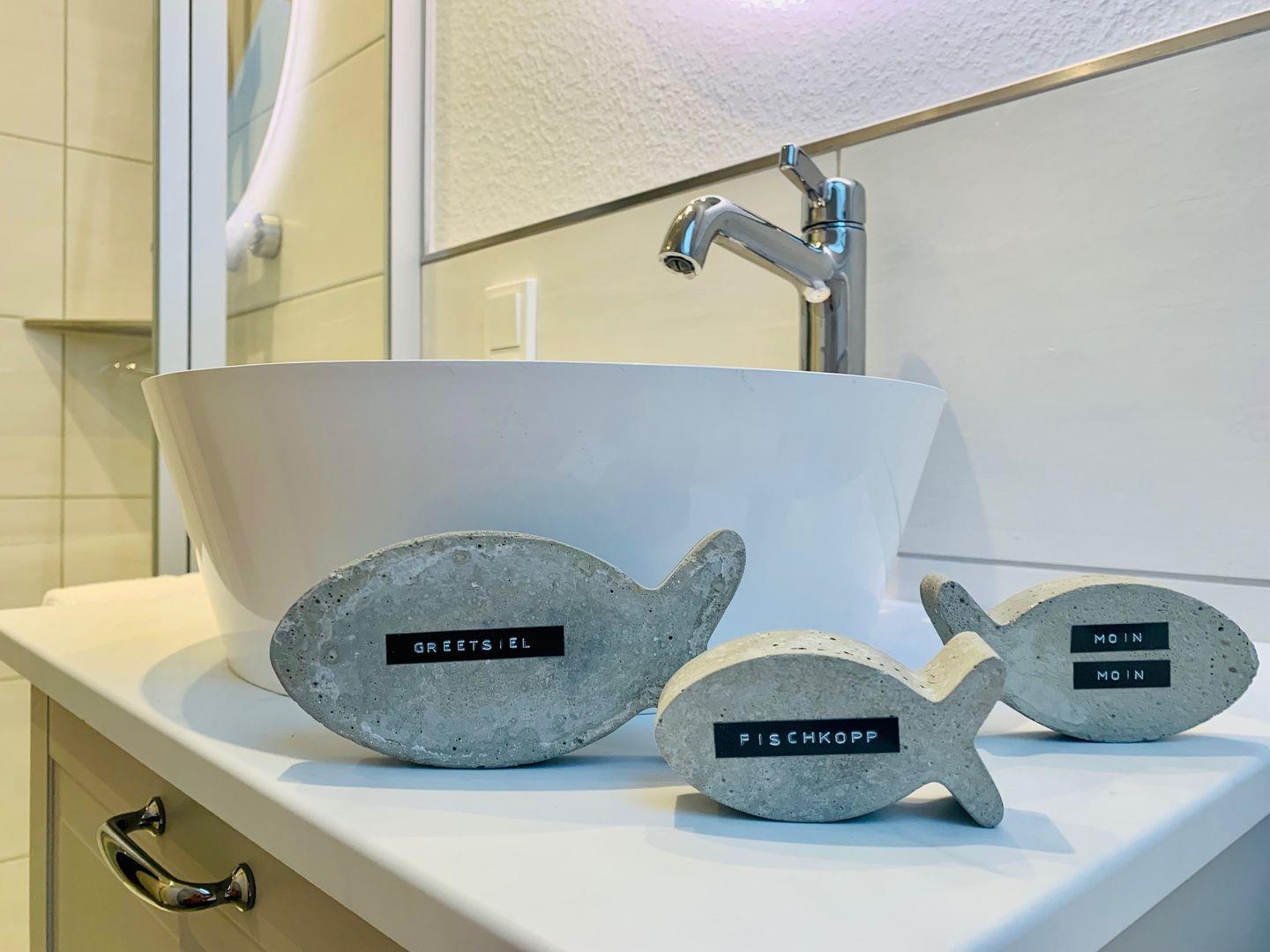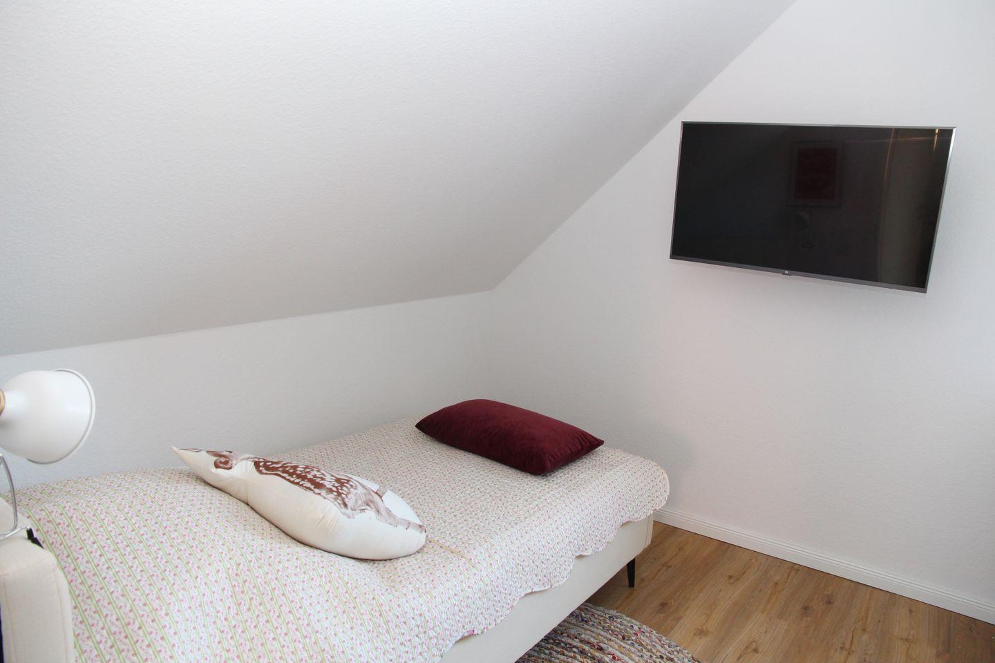 Ein Schlafzimmer und ein Badezimmer runden das Raumangebot im Erdgeschoss ab. Das moderne Bad überzeugt mit viel Platz, einer ebenerdigen, großen Rainshower-Dusche und einer Sauna, selbstverständlich finden Sie hier auch einen Fön. Im Schlafzimmer erwartet Sie ein bequemes Boxspringbett (1,60 x 2m) mit schönem Blick aufs Meer(bild) und einen offenen Kleiderschrank.