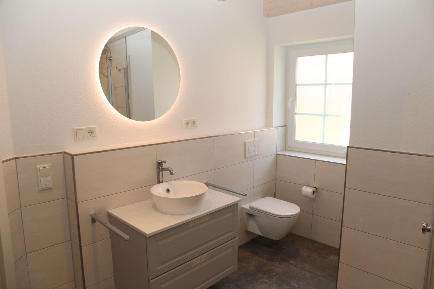 Im Obergeschoss finden Sie das zweite vollwertige Badezimmer. Auch hier gibt es eine Rainshower-Dusche und einen Fön, das Bad ist zusätzlich mit Bidet ausgestattet. Auf dieser Etage sind noch zwei weitere Schlafzimmer: