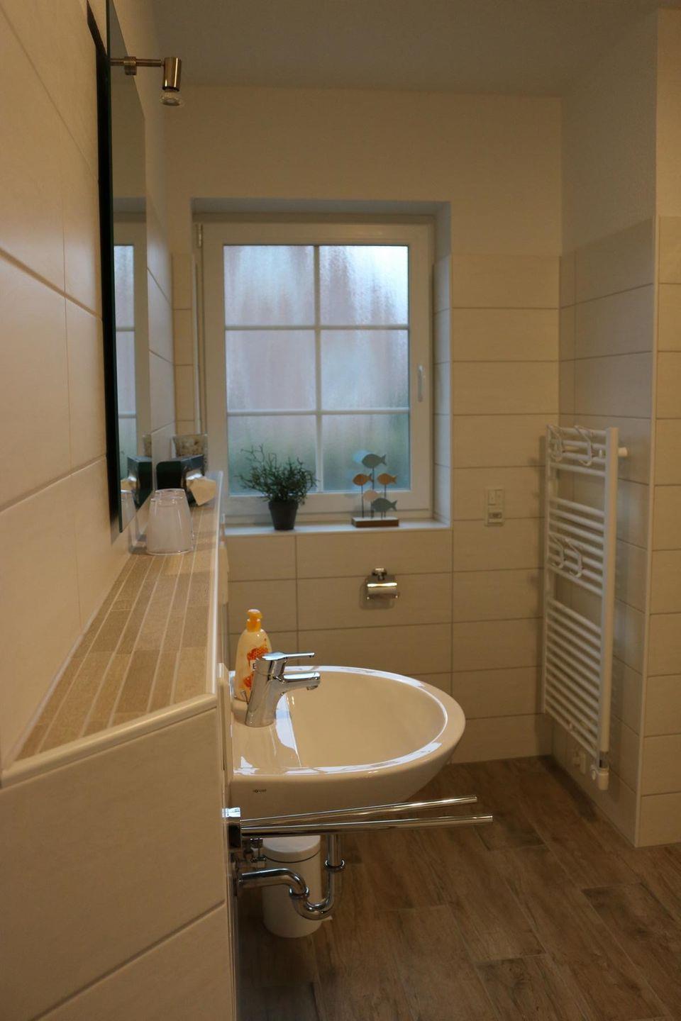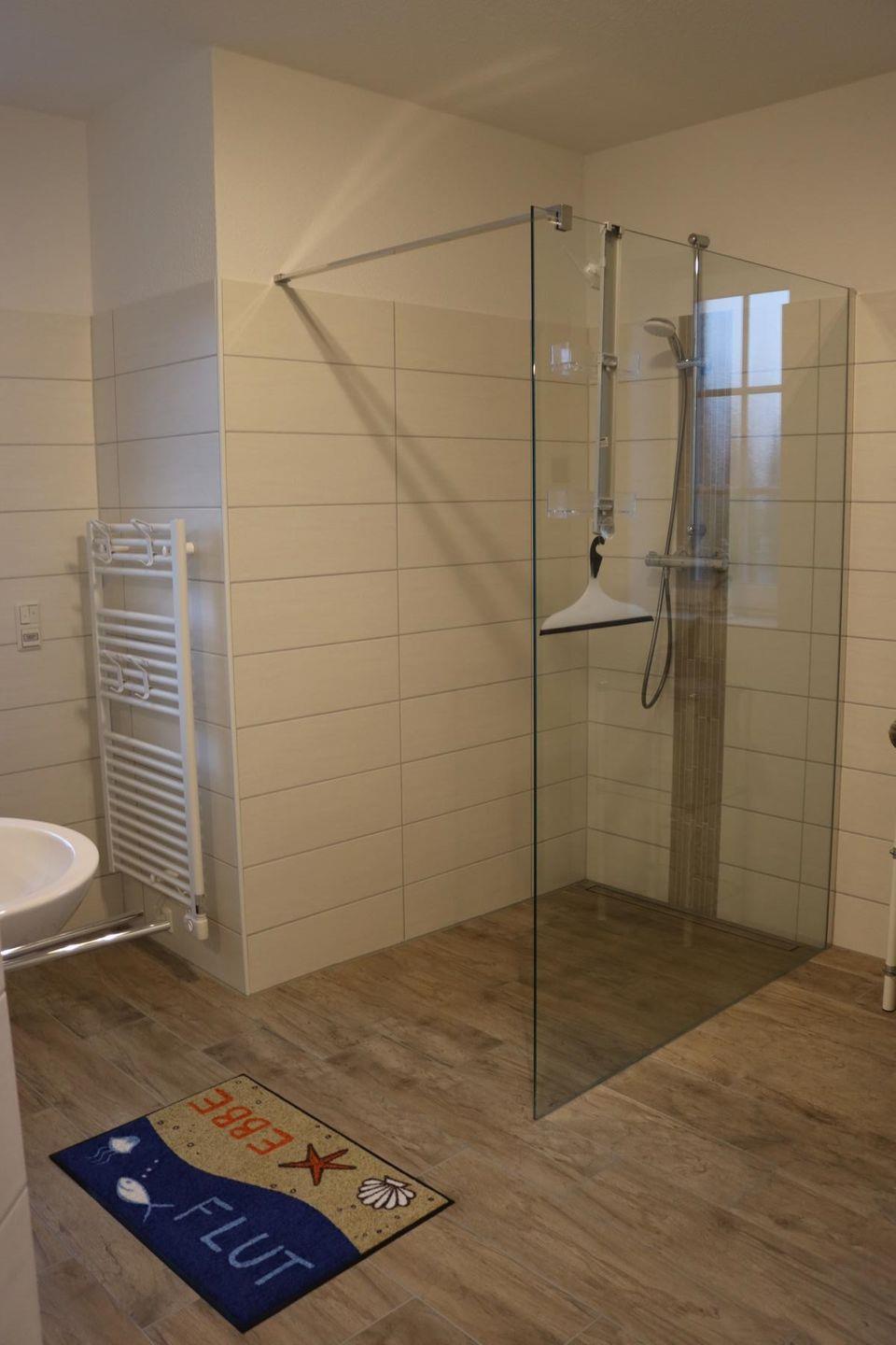 Die Nordseeperle ist gefliest und mit einer durchgehenden Fußbodenheizung ausgestattet, die Fenster verfügen über Plissees, Fliegengitter und Außenjalousien.