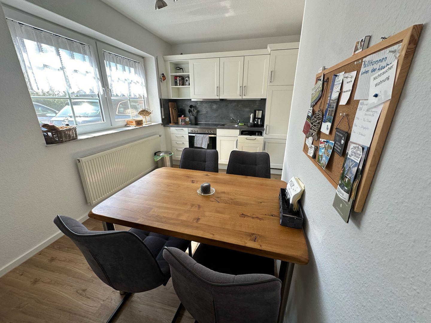 Die moderne Küche (neu in 2025) ist ausgestattet mit einem Essplatz für 4 Personen, Backofen, Ceran-Kochfeld, Kühlschrank mit Gefrierfach, Geschirrspülmaschine, Wasserkocher, Eierkocher und Kaffeemaschine (Melitta). Zudem finden Sie an der Pinnwand viele interessante Ausgehmöglichkeiten, Aktivitäten und Informationen (z. B. Fährfahrten) rund um Greetsiel.