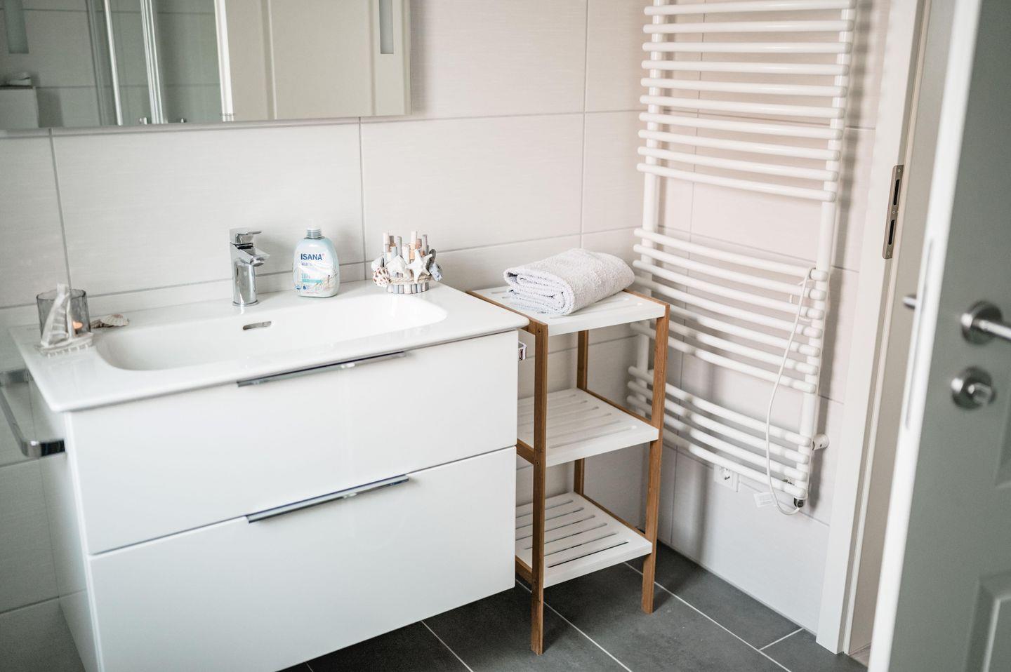 Die Wohnung verfügt über 2 Schlafräume (1xOG und 1x im Dachstudio), ein Duschbad mit WC, elektrischem Handtuchtrockner, Fenster und Föhn. Bis auf das geflieste Duschbad sind alle Räume mit einem Vinylboden in Holzdielenoptik ausgestattet.