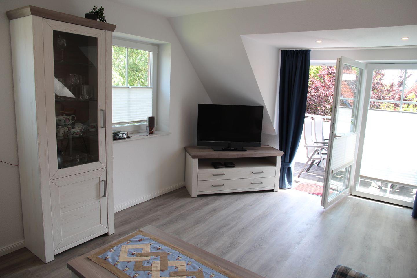Moderne, lichtdurchflutete Obergeschosswohnung mit Balkon nahe Greetsieler Hafen und Zwillingsmühlen.