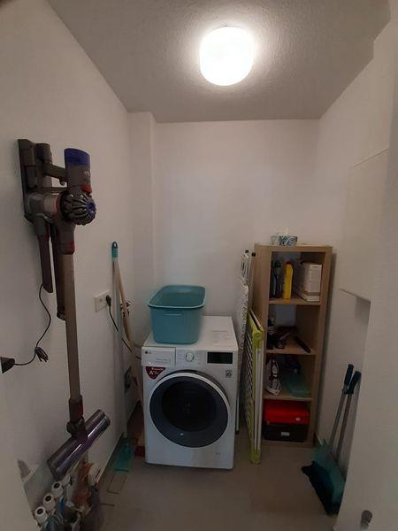 Eine Waschmaschine, Wäscheständer, Bügelbrett/-eisen und Putzutensilien befinden sich im Abstellraum. Dieser ist groß genug, um darin Ihre Gepäckstücke zu verstauen.