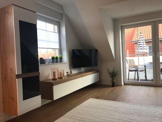 Moderne Ferienwohnung mit Balkon in Greetsiel nahe Zwillingsmühlen, Hafen und Ortsmitte.