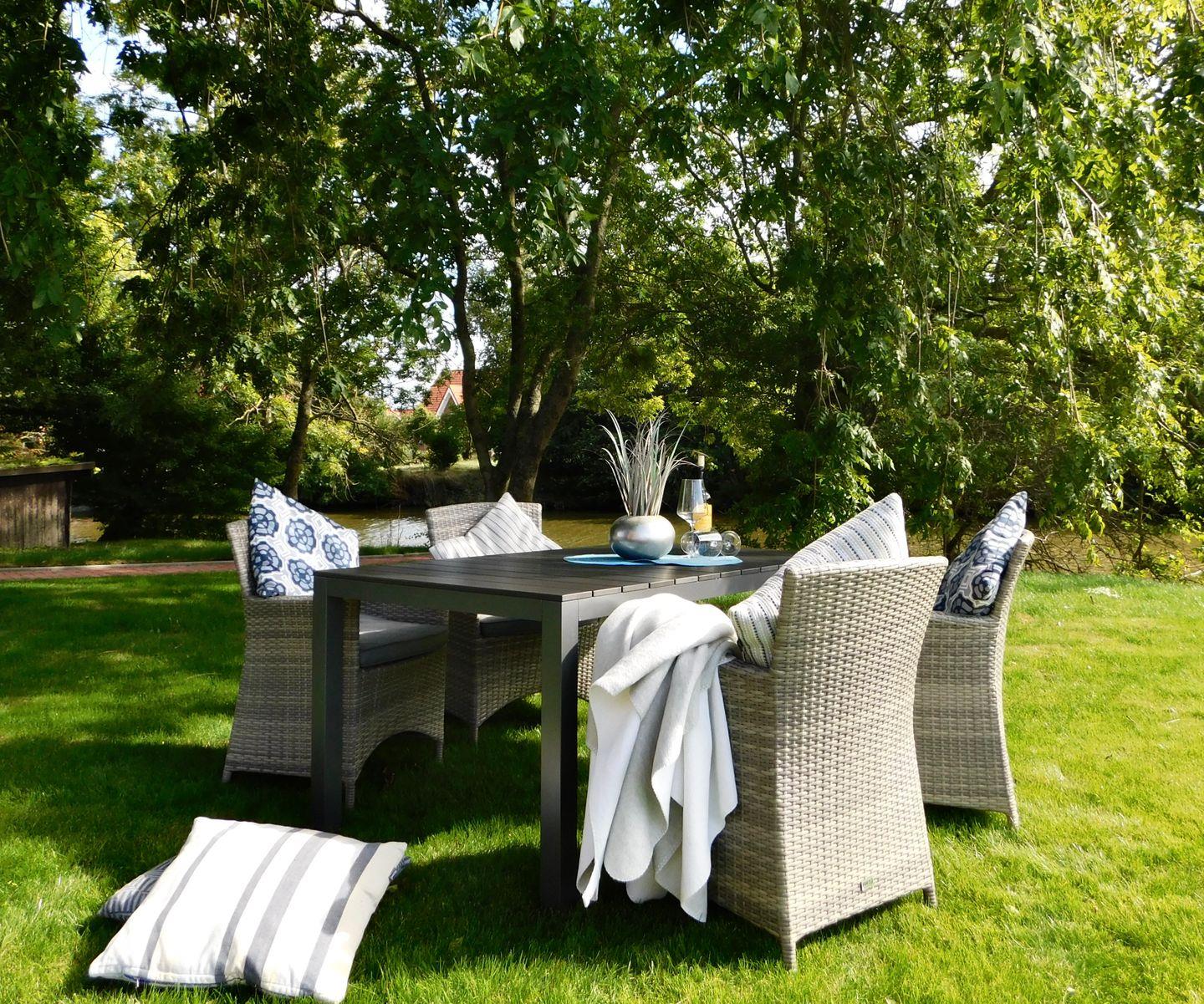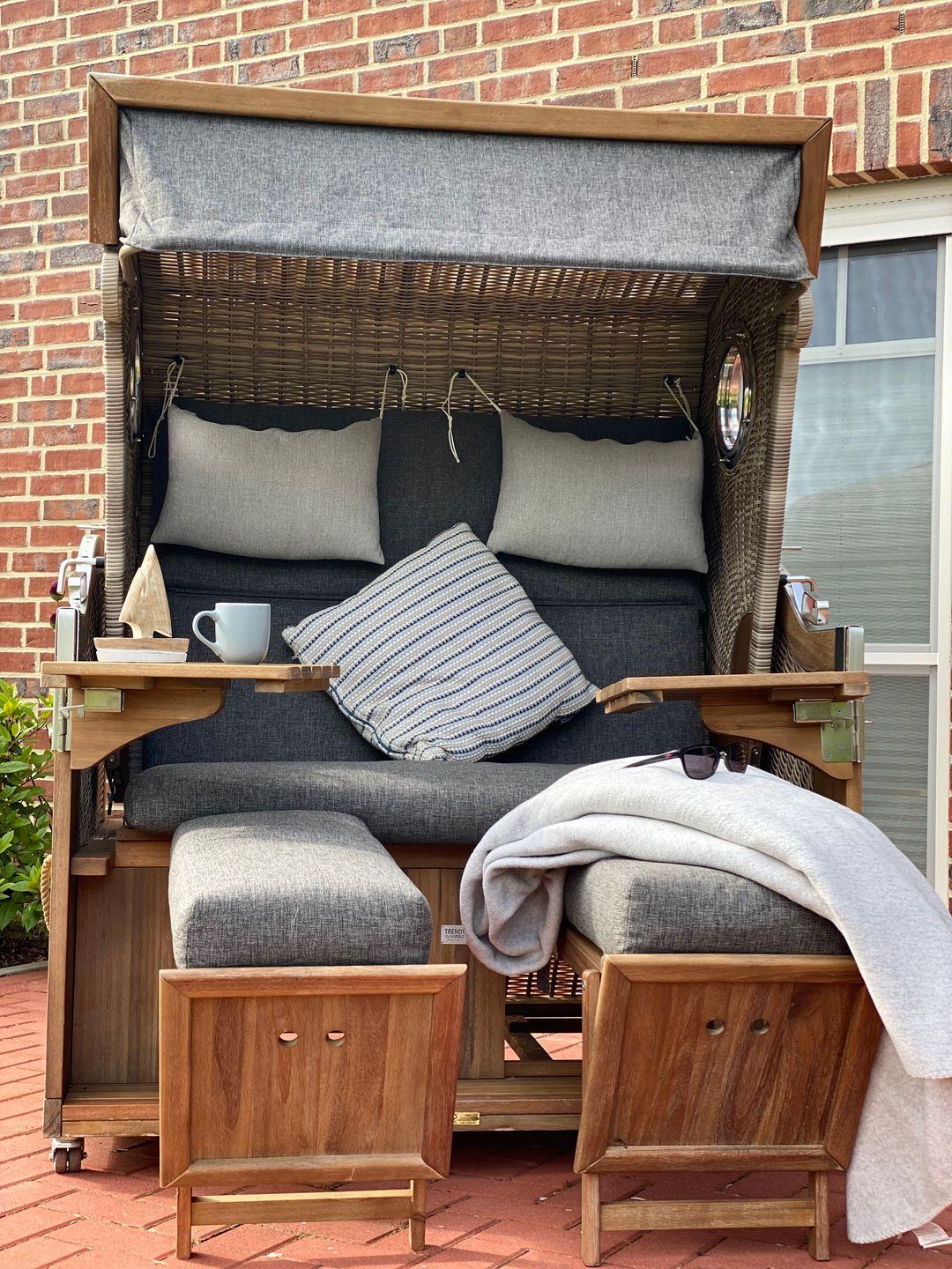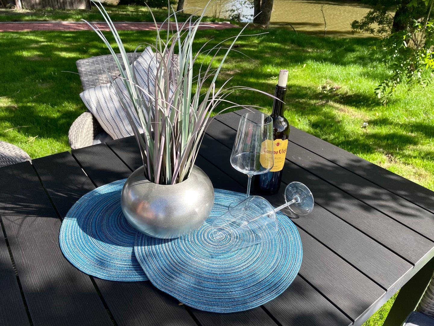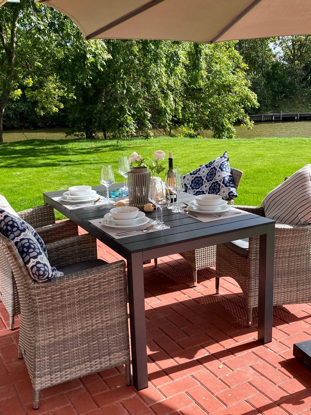 Grachtentied besticht durch einen gemütlichen Wohn-Essbereich, der zum Verweilen einlädt. Die farblich aufeinander abgestimmten und maritim anmutenden Einrichtungselemente lassen sofort Gemütlichkeit aufkommen. Durch die bodentiefen Fenster in der gesamten Wohnung entsteht eine lichtdurchflutete, warme Atmosphäre. Privatsphäre ist durch die an allen Fenstern vorhandenen Plissees möglich. Weiterhin sind alle Fenster mit Insektenschutz ausgestattet. Die große Süd-Terrasse mit den hochwertigen Gartenmöbeln lädt zum Entspannen und Verweilen ein. Hier lassen sich bei einer Tasse Tee oder einem Glas Wein herrliche Abende verbringen und die vorbeifahrenden Boote beobachten. Die Wohnung verfügt zudem über einen großzügigen Garten. Ergänzend steht Ihnen pünktlich zu den Osterferien ein sehr hochwertiger und gemütlicher Strandkorb zur Verfügung, indem Sie geschützt auch an etwas windigeren Tagen die Sonnenstrahlen einfangen und genießen können.
